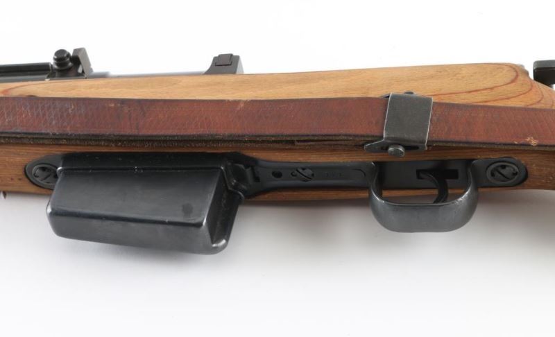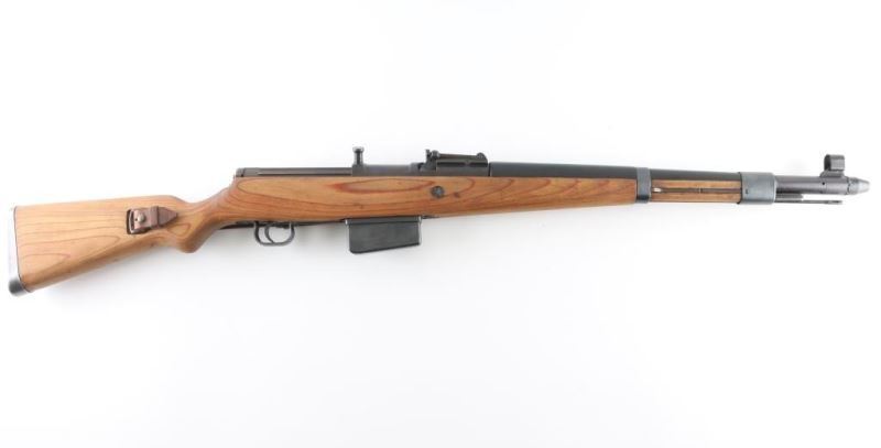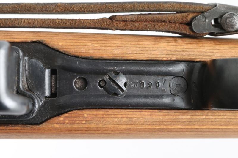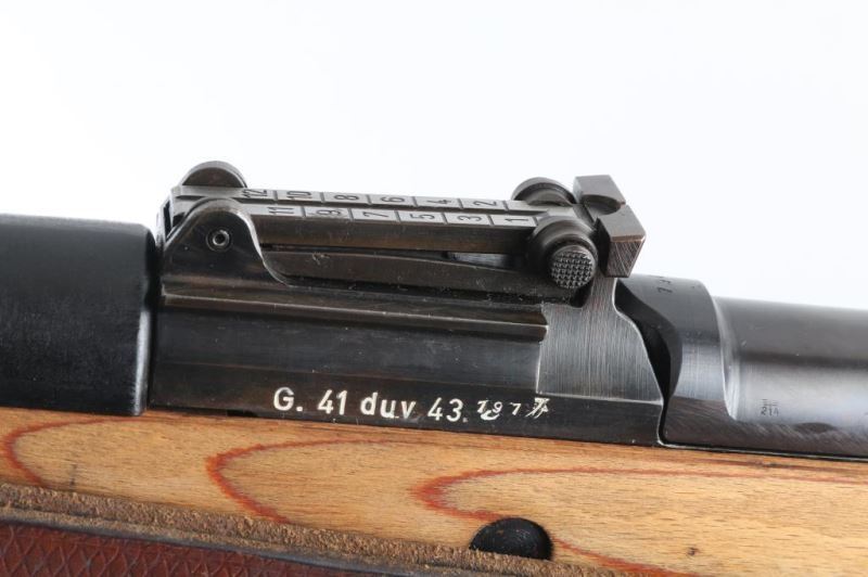 Rifle. Semi-Automatic. 10-rd non- detachable box magazine. Gas-operated. gas trap/bolt action.21.5" barrel Hooded serrated ramp/blade, and tangent rear sights. Rear sight base machined for scope rails. Ultra rare and desirable Gewehr 41 WW2 rifle. Estimated production numbers vary, some up to 145,00, but it seems the accepted number by most collectors to be about 10,000. Used extensively on the Eastern front making their survival rate very low. This 1943 rifle was produced in its last year of production of the G41 before they were turned over fully to G43 production. It is thought that the highest serial number that duv 43 known is around 6500h, making this rifle a very early production. Left side of receiver stamped with large "G.41duv 43" followed by serial number "191b". Left front sight base stamped "191" with two correct Eagle/214 waffenamts. Rear sight is stamped with two Eagle/214 waffenamts. Top of bolt stamped with Eagle/Swastika proof, and Eagle 214 waffenamt. Bolt carrier has Eagle/214 Waffenamt of the left side, and "191" on the top front. Rear receiver stamped with Eagle/214 waffenamt, and "191". Waffenamt Eagle/214, and "191" stamped between the triggerguard and magazine. Safety latch stamped with waffenamt Eagle/214. Cone shaped gas trap at the muzzle is stamped "191". Stock stamped with two feint, unreadable waffenamts, and "191" on the underside of stock between the buttplate, and grip. Type 1 receiver, bolt, bolt carrier, gas cone, and action cover, internal parts that were mostly all machined. Finely blued,and polished. Correct wartime stamped triggerguard and box magazine. Stamped barrel bands, and stamped steel, cupped buttplate. Blonde wood stock with black phenolic resin handguard, a bakelite type plastic. Bore appears good with strong rifling, but somewhat dirty. All markings crisp and clear. Receiver markings highlighted in white. Action is crisp/tight. Original blued finish is about 98% with some minor scratches. Receiver is a blue/plum color. Wood is excellent, and has not be fooled it. Handguard is very good with minor scratches and handling wear. Buttplate is very good. Correct cleaning rod present. No import marks. Original WW2 K98 type cross-hatched brown leather sling with "SC" with pine tree stamped on the metal keeper, Schmole und Company, Manden. I believe it is safe to say this rifle is probably one of the best conditioned, un-fooled with G41's out there. NRA Condition-Near Excellent. C&R firearm.