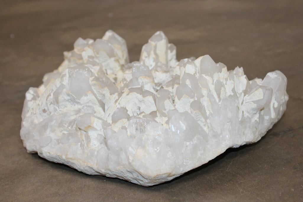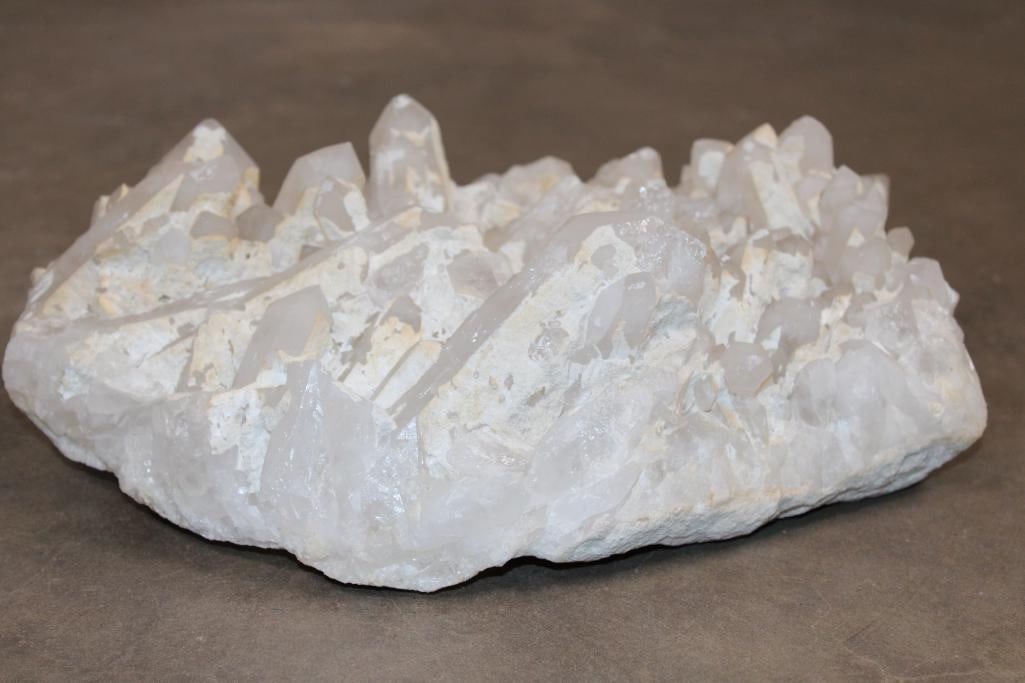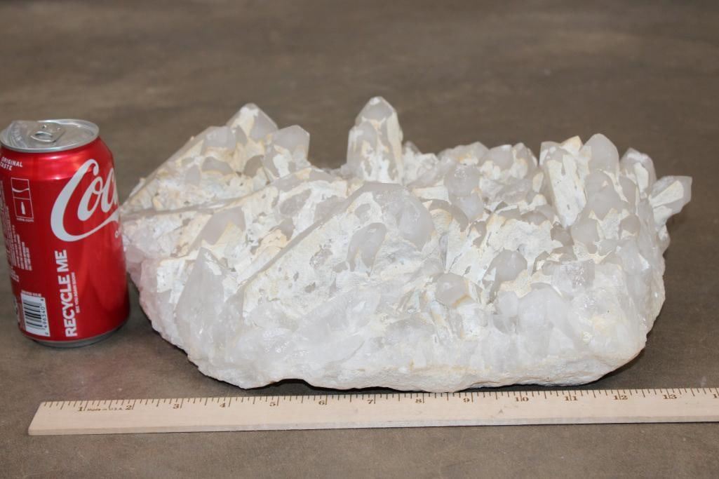 Big Natural CLEAR QUARTZ Formation with many rock crystal points. It Weighs 19 lbs 10 oz and measures 14" Long x 10.5" Wide x 4.25" Thick. Clear Quartz Crystals are used for protection. They are believd to shield against negativity, attune to your higher self, and relieve pain. It is often used in meditation to filter out distractions. ROCKS FOSSILS MINERALS CRYSTALS