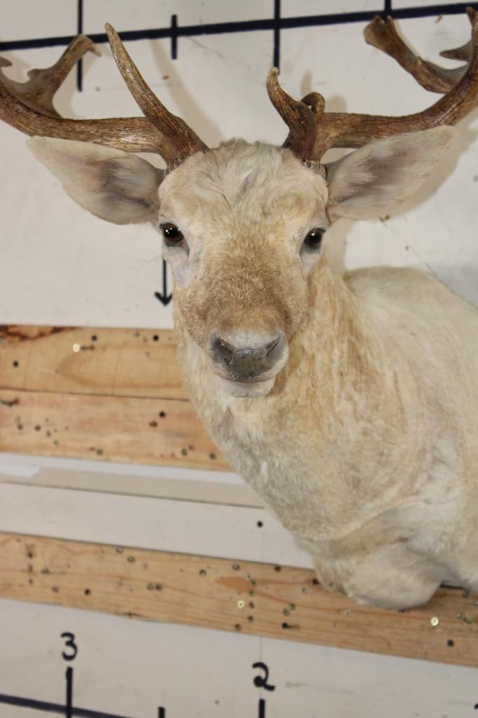 Nice, Clean, and Newer 23-Point WHITE FALLOW DEER Shoulder Mount with a Heavy Rack. It has a 31.5" Spread and is in Good Condition. TAXIDERMY