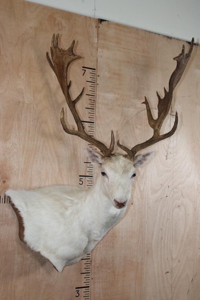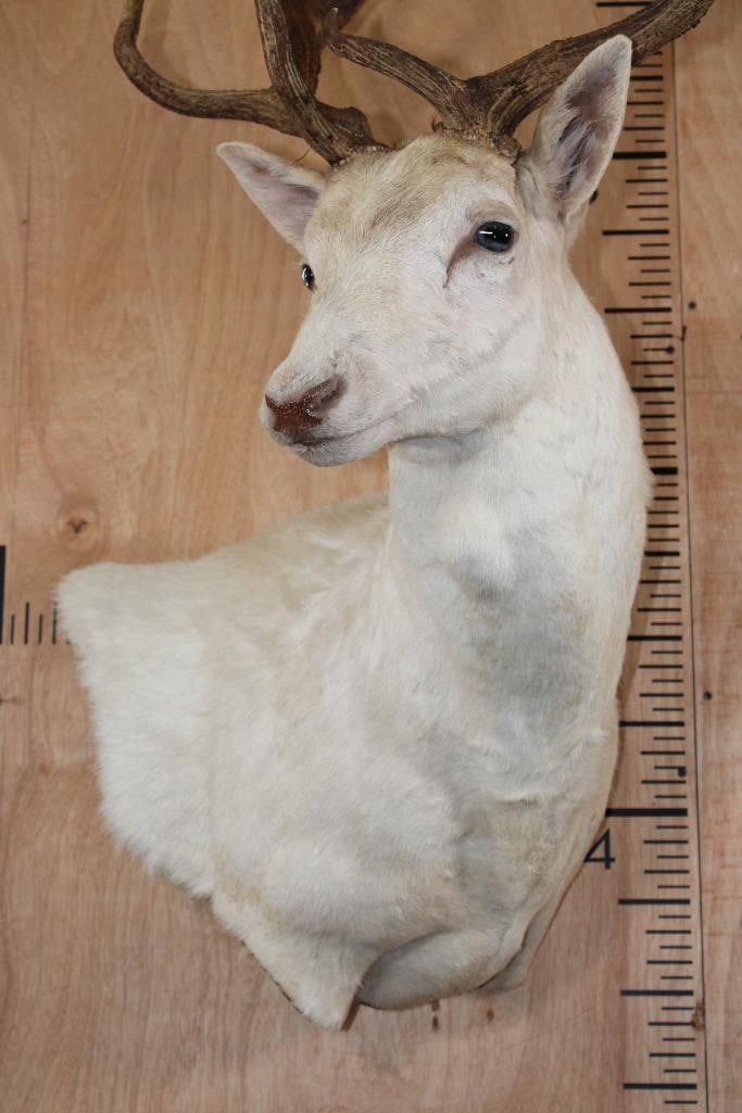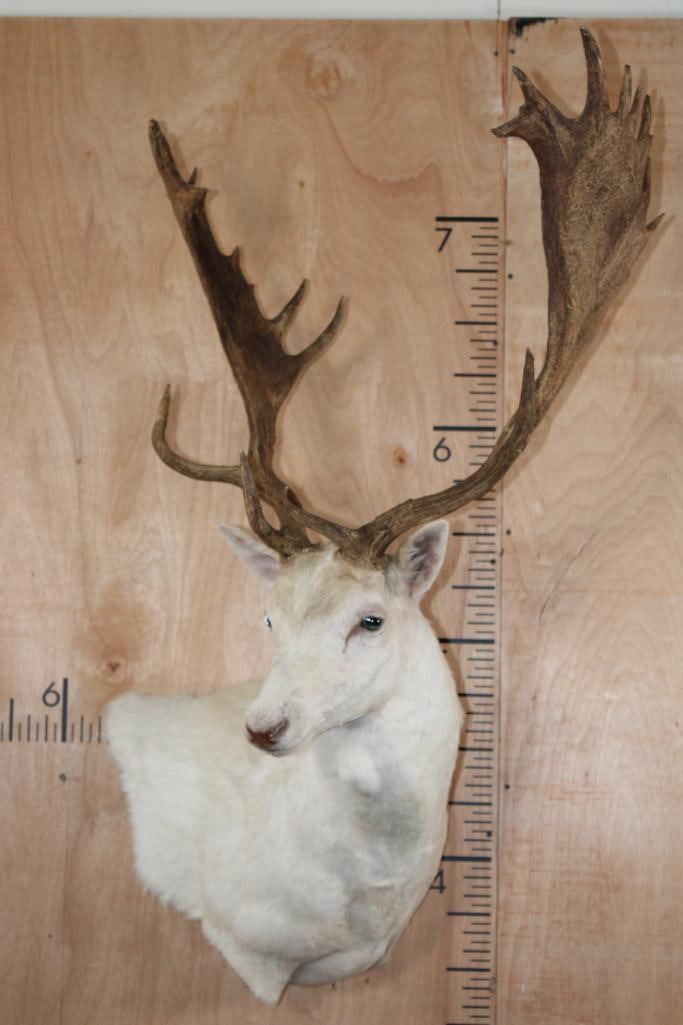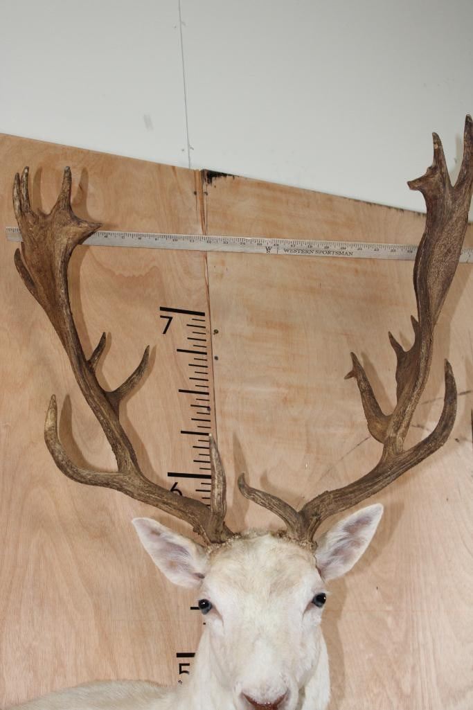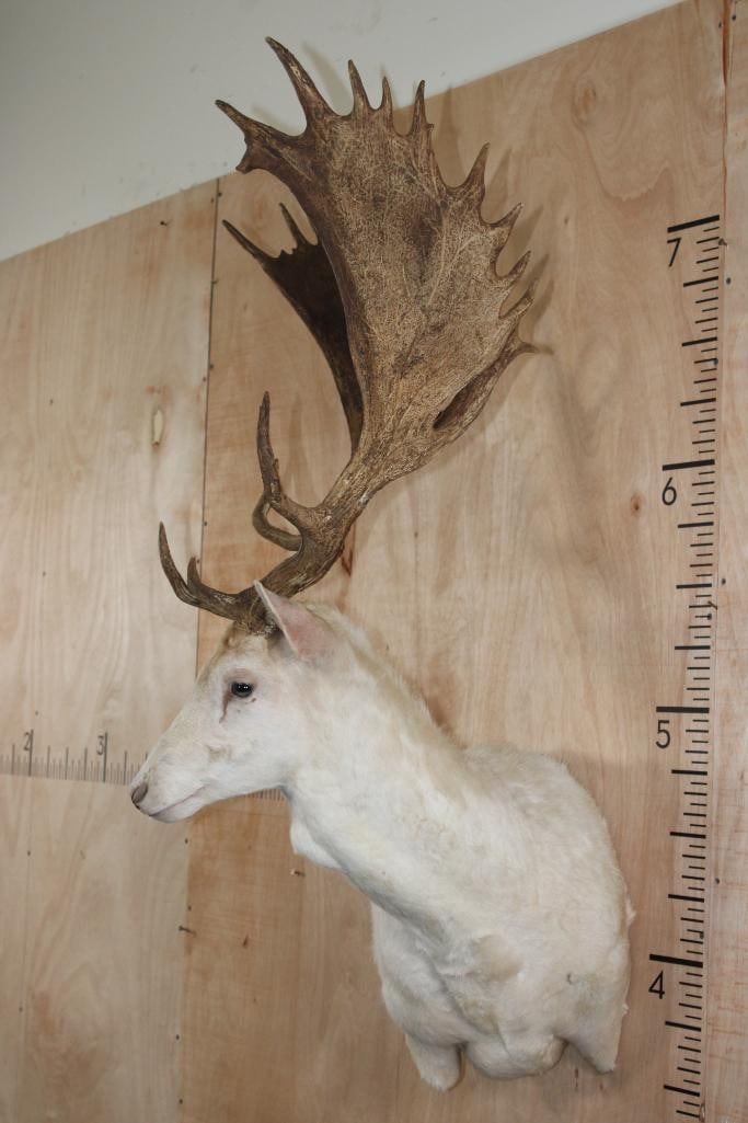 Very Nice, Clean, and Newer Big 25-Point White FALLOW DEER Wall Pedestal Mount. It has a 27" Spread and is in Very Good Condition. TAXIDERMY