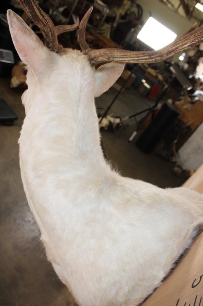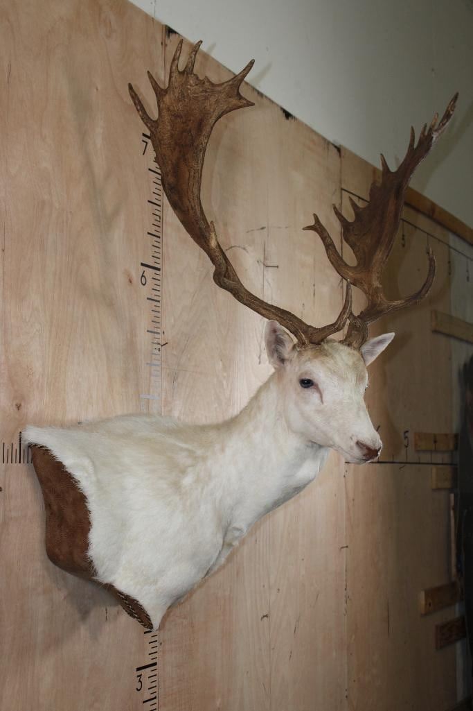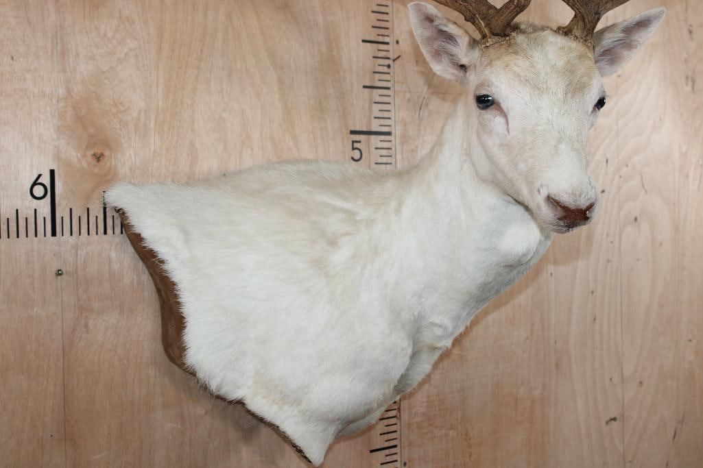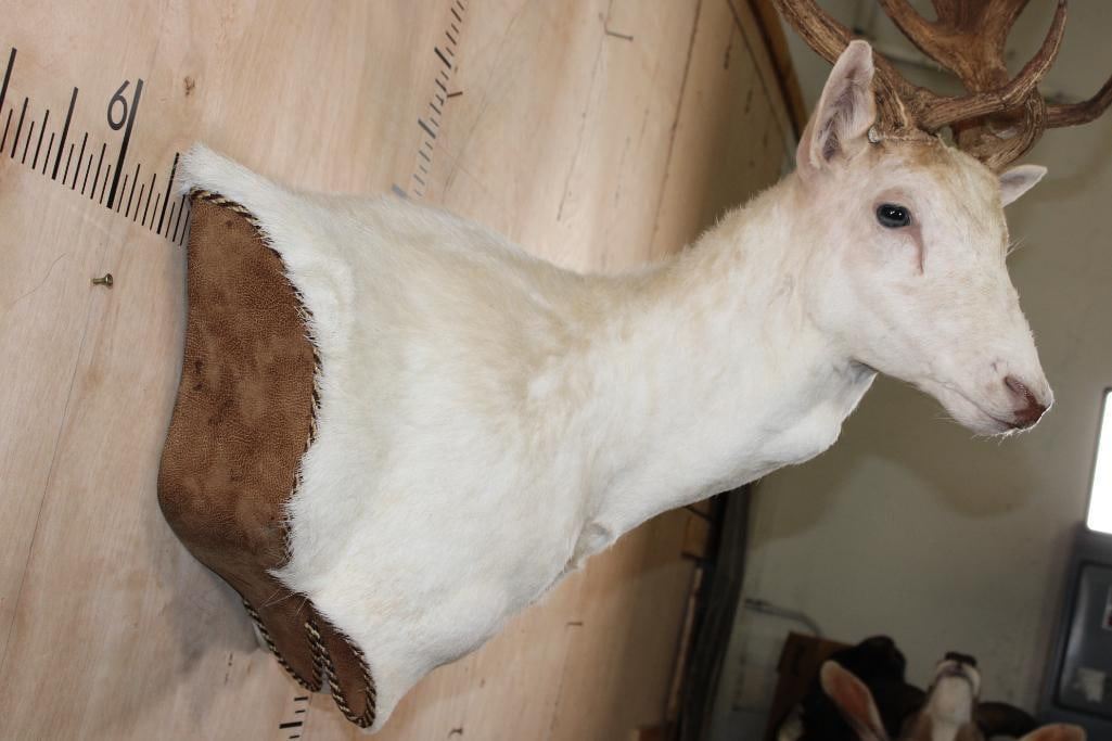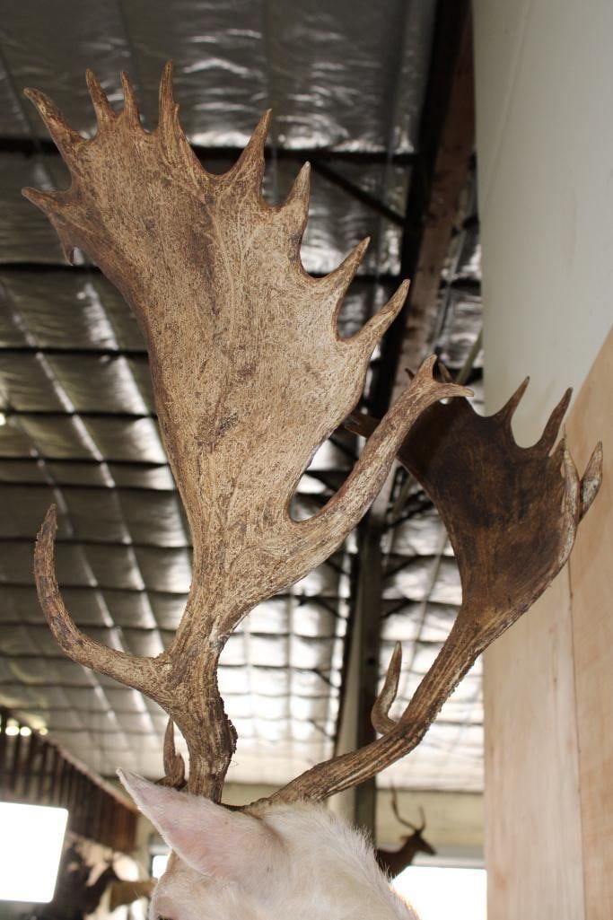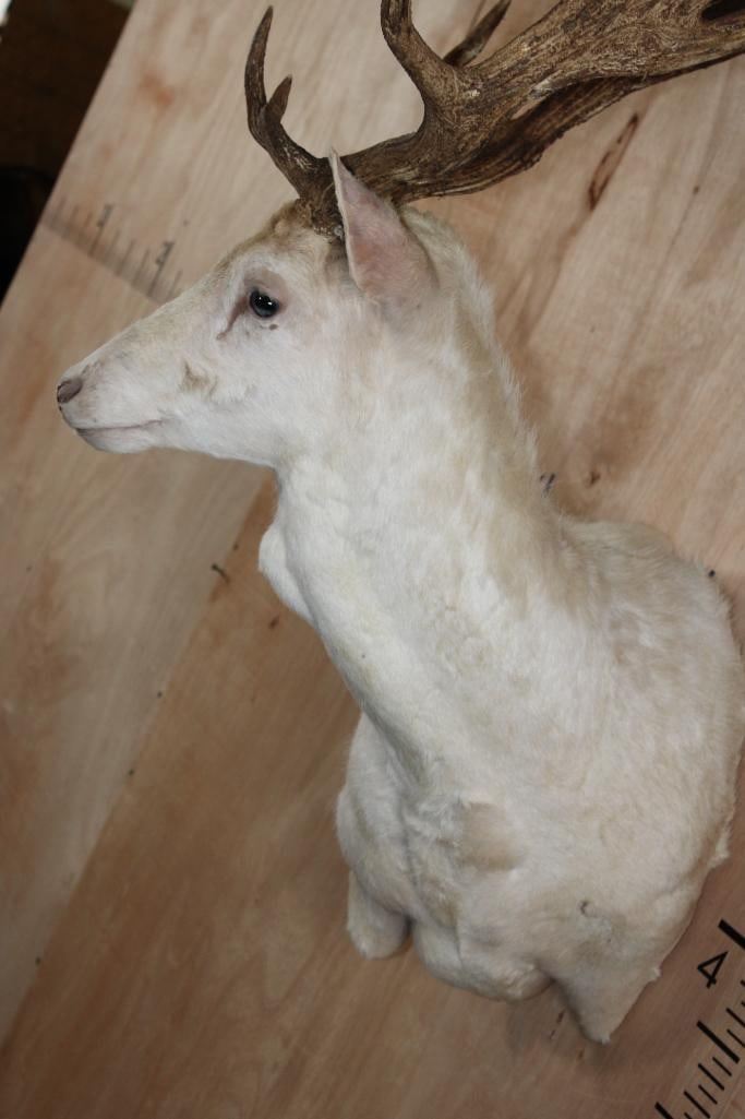 Very Nice, Clean, and Newer Big 25-Point White FALLOW DEER Wall Pedestal Mount. It has a 27" Spread and is in Very Good Condition. TAXIDERMY