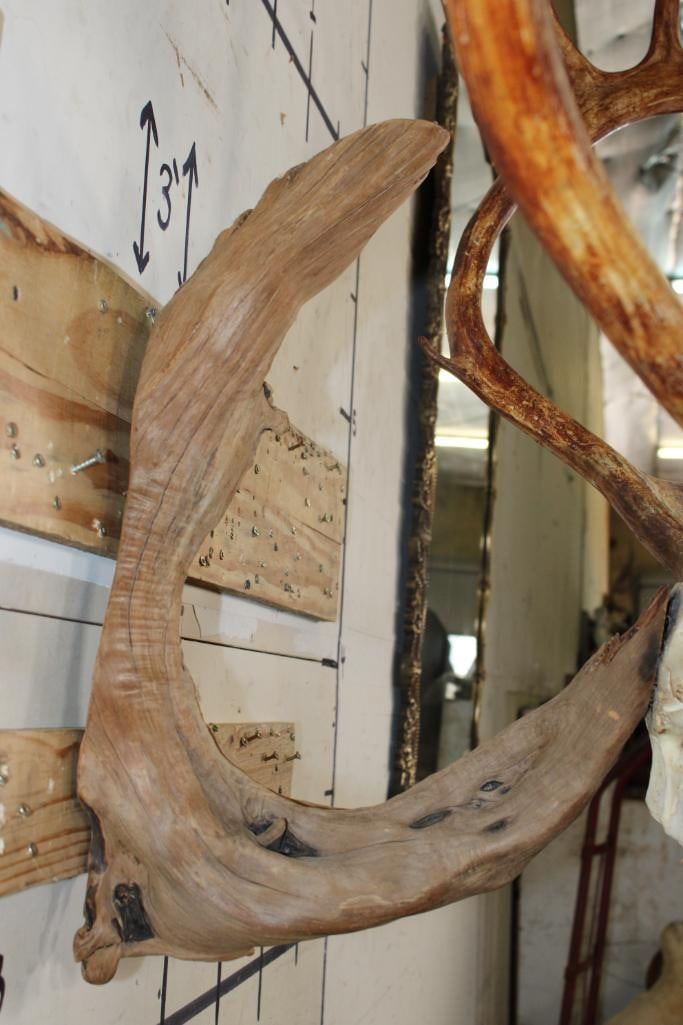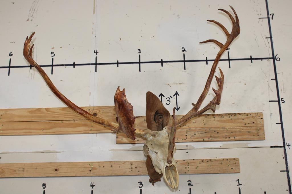 Nice and Big 26-Point CARIBOU Skull on a Driftwood Wall Hanger. It has All its Teeth and a 47" Spread. TAXIDERMY