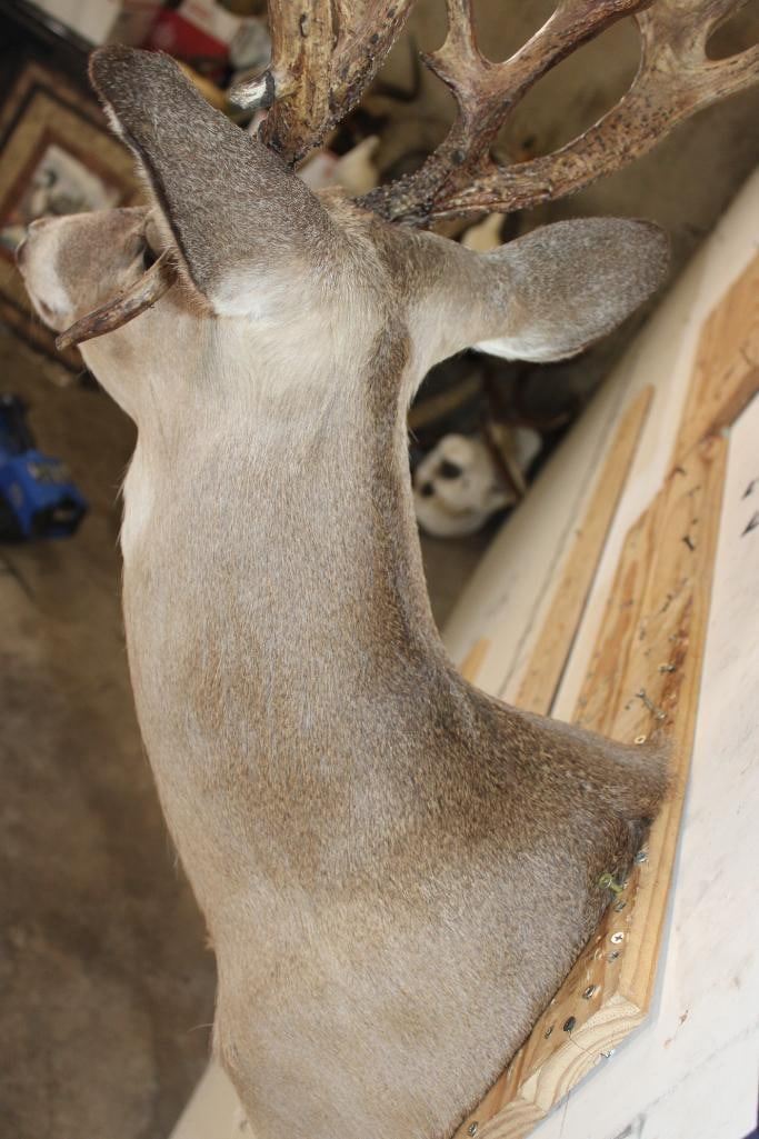 Big 27-Point WHITETAIL DEER Buck Shoulder Mount with *Real* Removable Antlers. It has a 24" Spread. TAXIDERMY