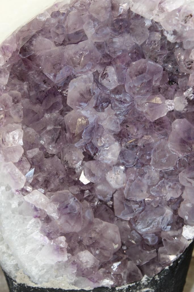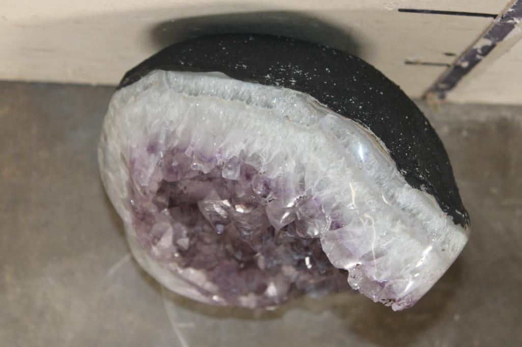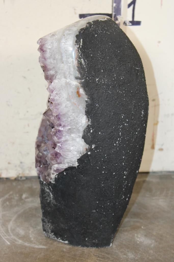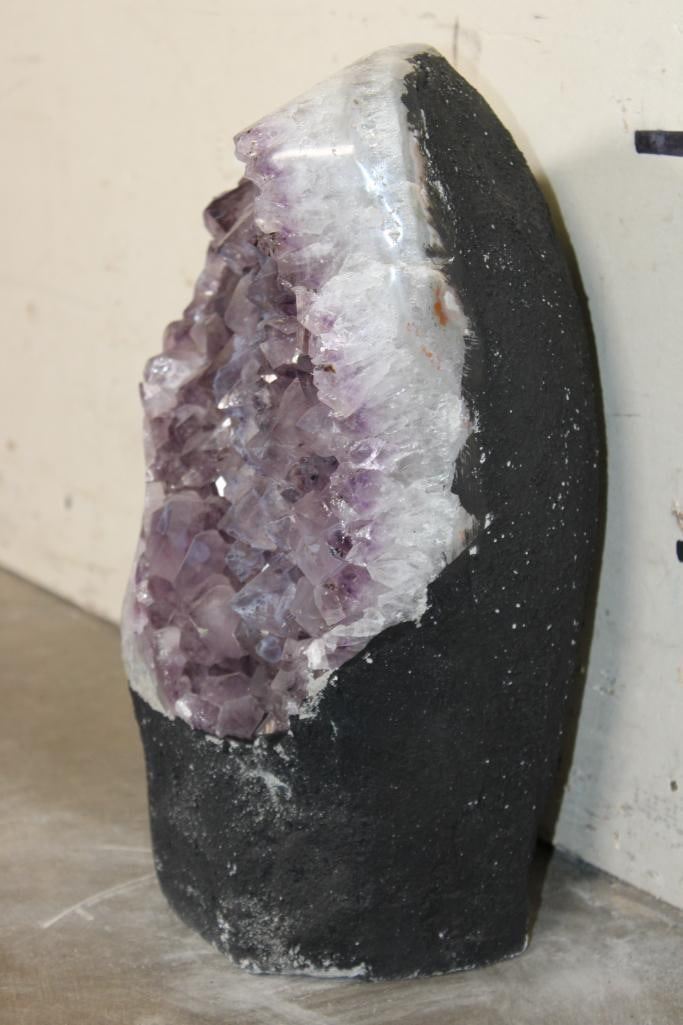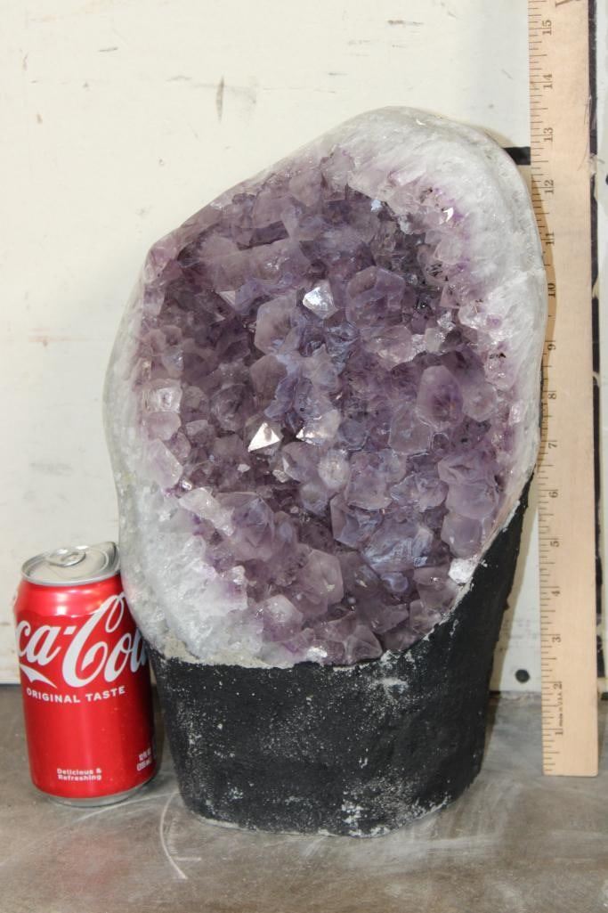 Big Natural AMETHYST Crystal Geode. It measures 13.75" Tall x 9" Wide x 7" Depth. It has a cut, polished, and lacquered base and the Total Weight is 35.2 lbs or 16 kg. Amethyst gets its name from the Greek words "amethystos" which means "not drunk". In ancient times, amethyst was believed to have the power to prevent drunkenness and keep the wearer quick-witted in both business and battle. ROCKS MINERALS FOSSILS CRYSTALS