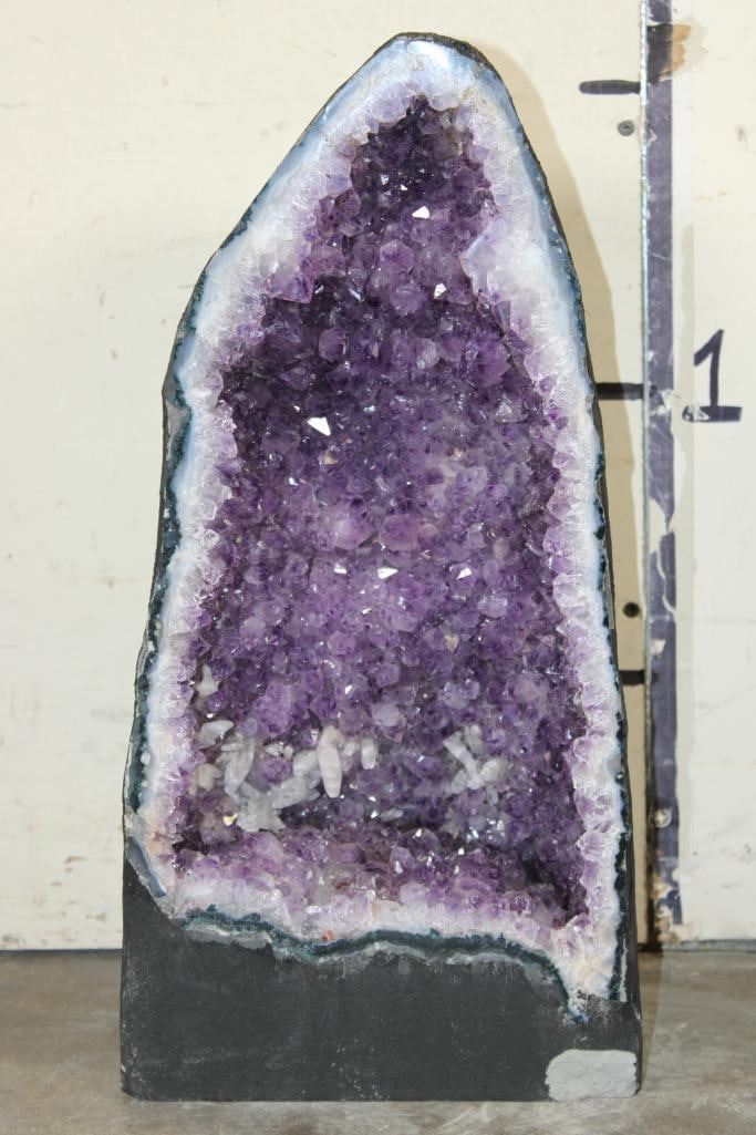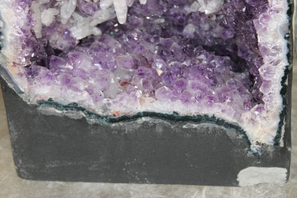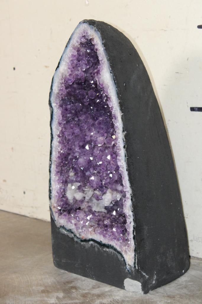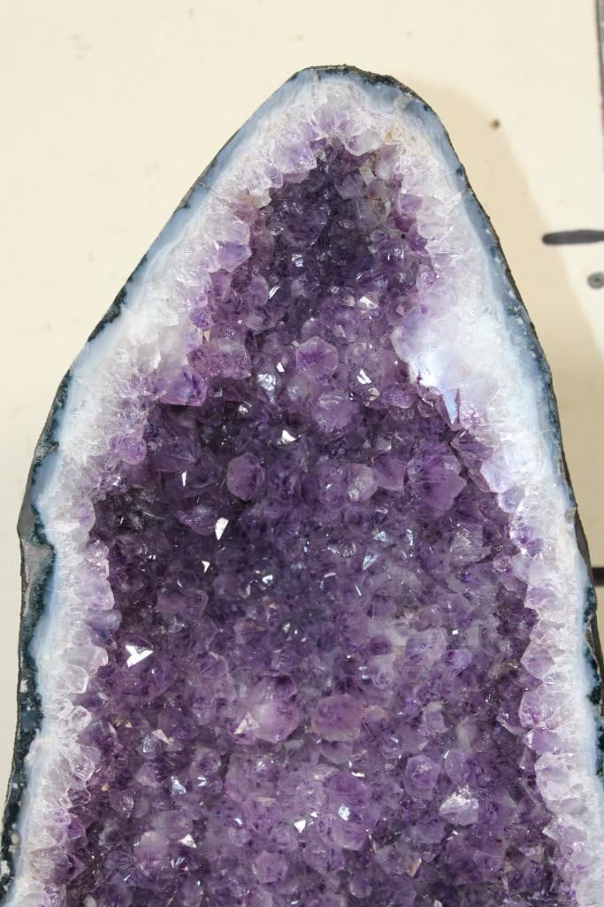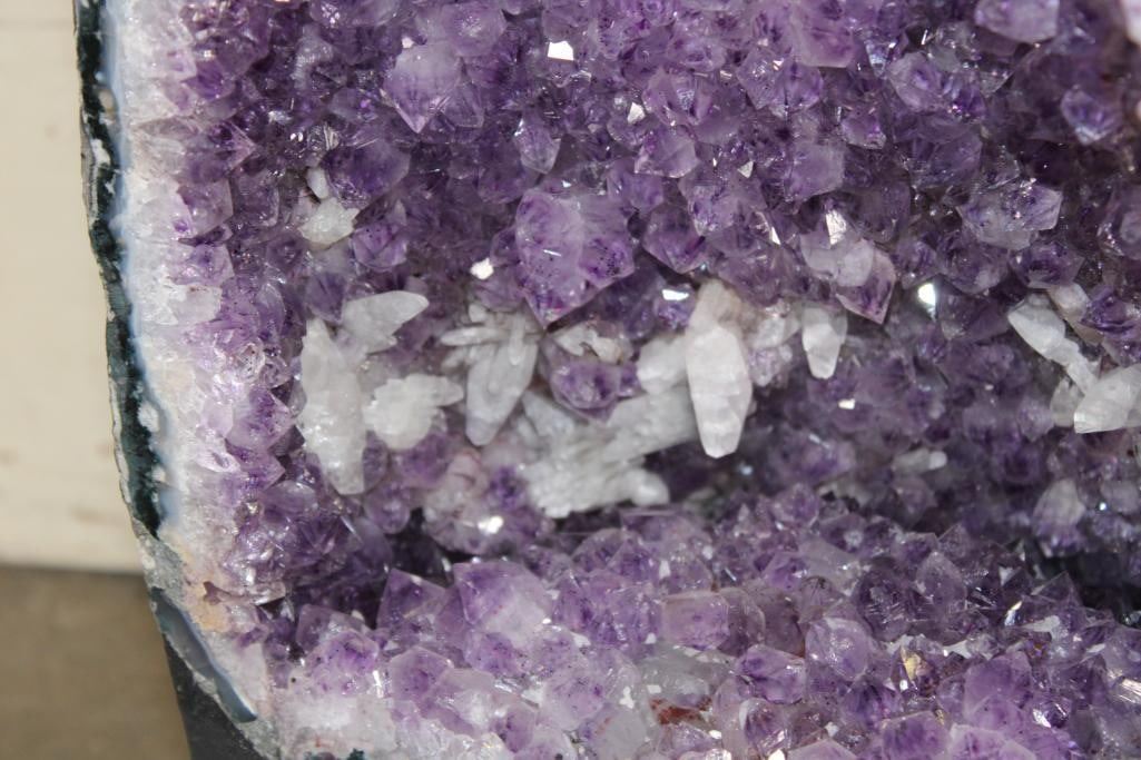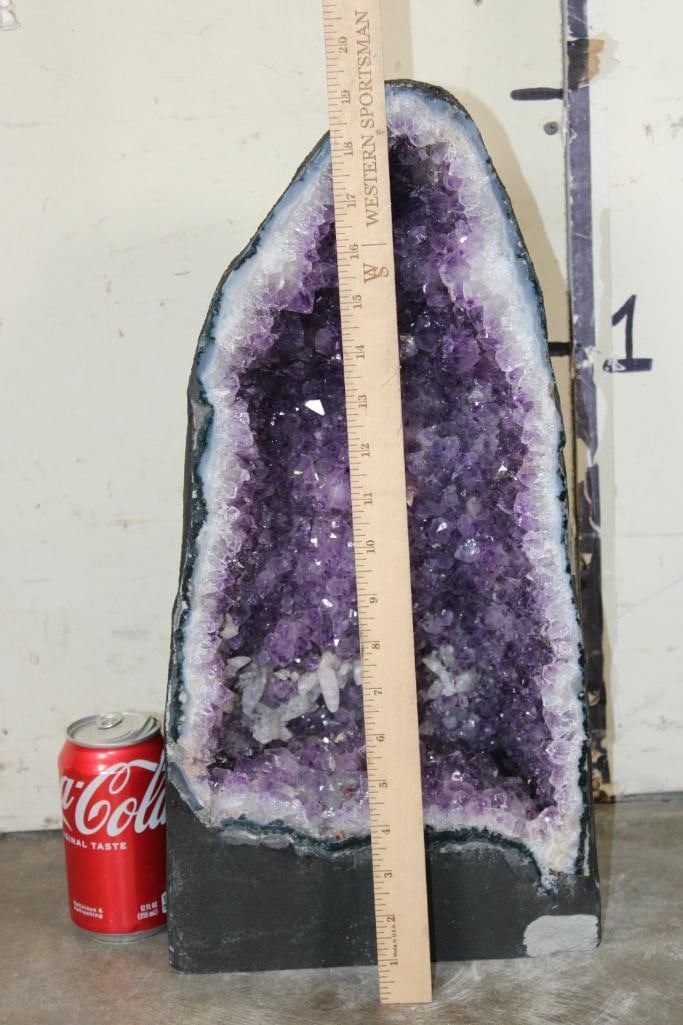 Gorgeous AMETHYST and Clear Quartz Crystal Geode Cathedral from Brazil. It measures 19.25" Tall x 9.5" Wide x 8.25" Depth and has a Total Weight of 57 lbs 2 oz. Clear Quartz points are present within, near the base of the Cathedral. Known for its calming energy, Amethyst can help promote inner peace, and balance. ROCKS MINERALS CRYSTALS