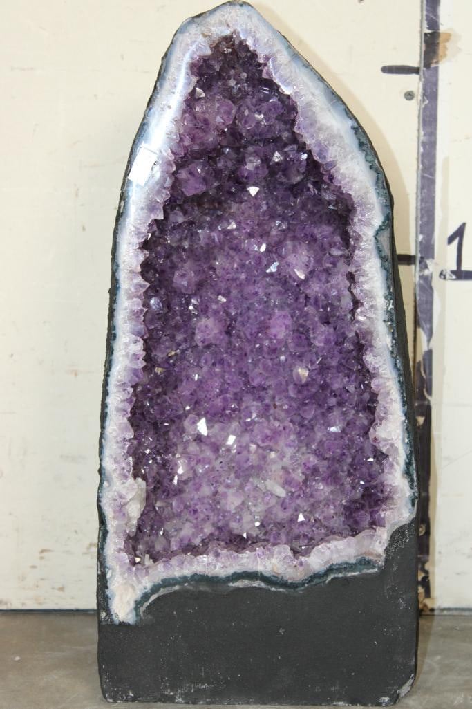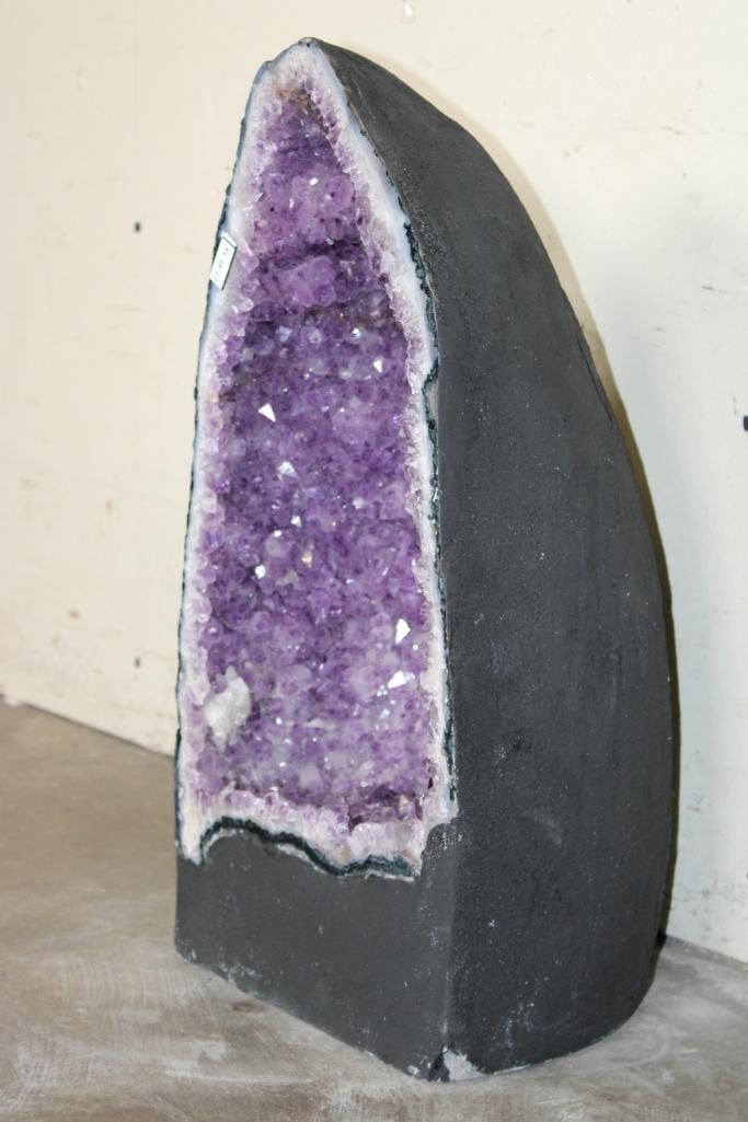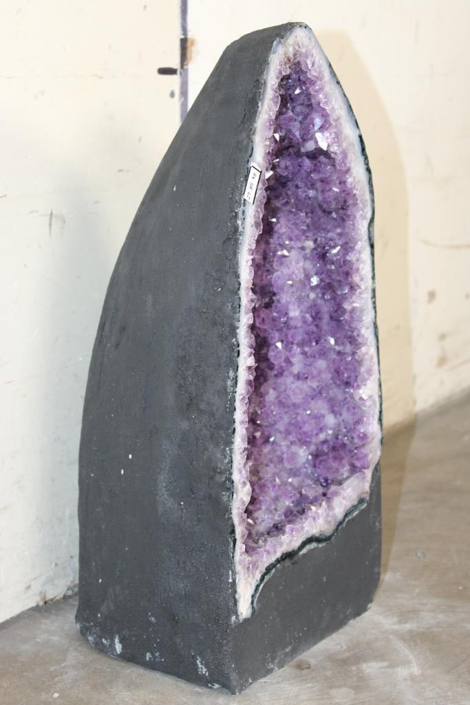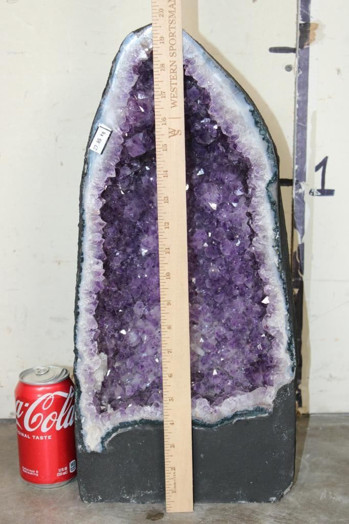 Big Deep Purple AMETHYST Crystal Geode Cathedral. It measures 19.75" Tall x 9.5" Wide x 8.5" Depth and the Total Weight is 61.27 lbs or 27.85 kg. This is a stunning decorative piece. ROCKS FOSSILS MINERALS CRYSTALS