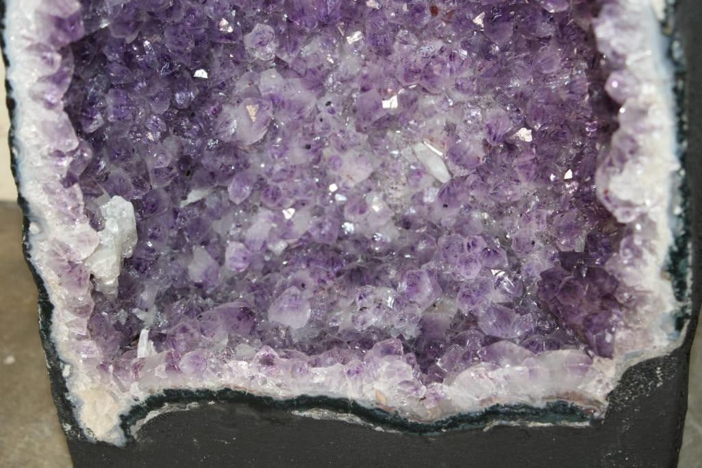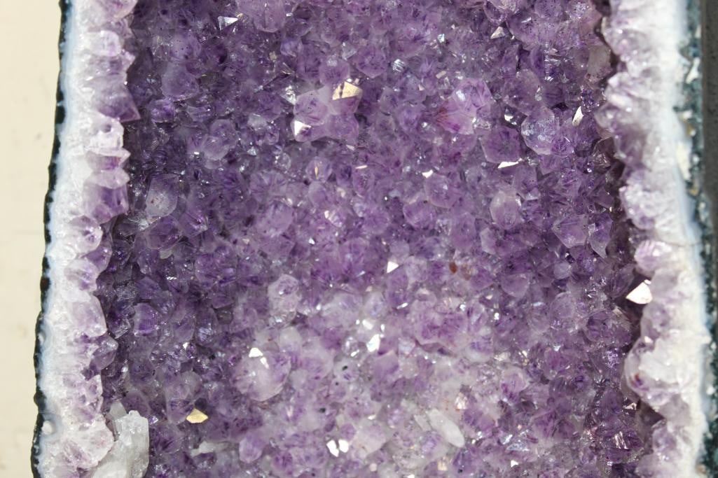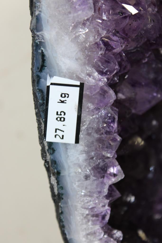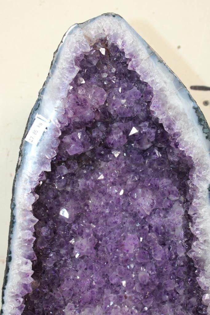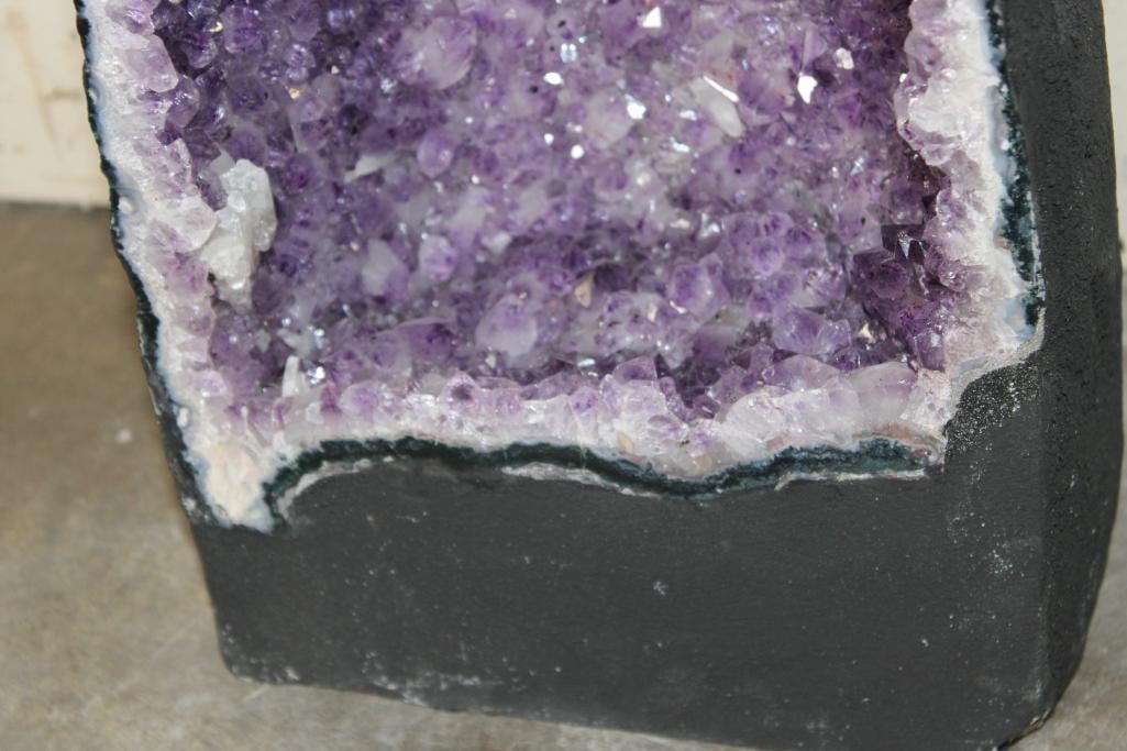 Big Deep Purple AMETHYST Crystal Geode Cathedral. It measures 19.75" Tall x 9.5" Wide x 8.5" Depth and the Total Weight is 61.27 lbs or 27.85 kg. This is a stunning decorative piece. ROCKS FOSSILS MINERALS CRYSTALS
