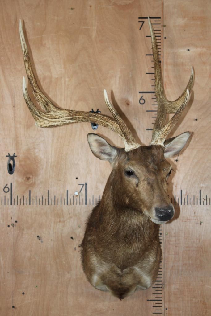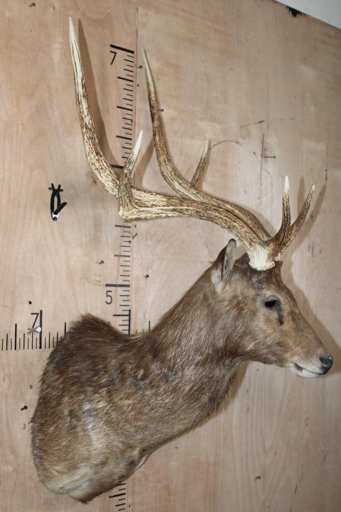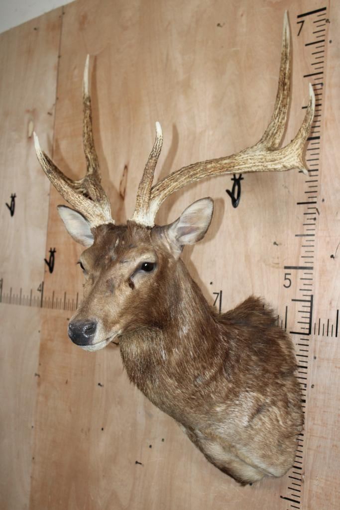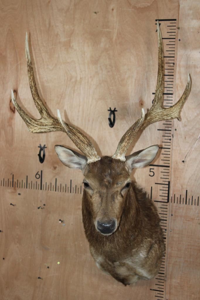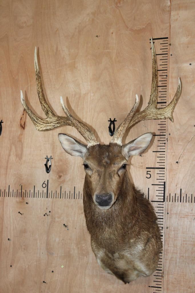 Nice and Big 7-Point MANCHURIAN SIKA Deer Shoulder Mount. It has a 27.25" Spread and is a Clean and Newer mount in Good Condition. TAXIDERMY