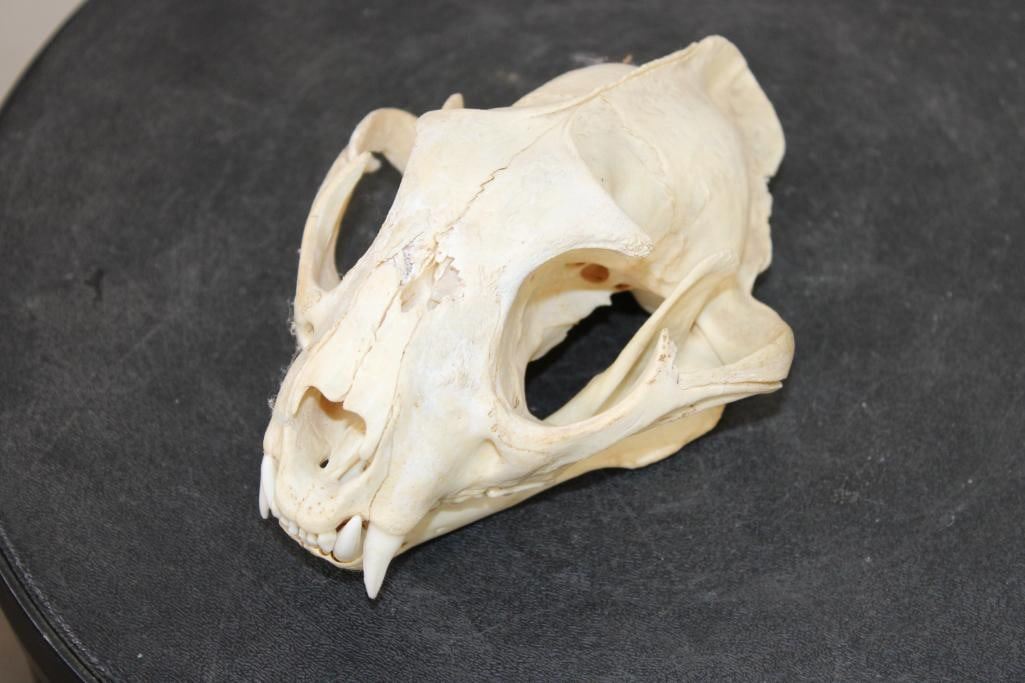 Big BOBCAT Skull with most of its Teeth. It measures 6" Long x 4 3/8" Wide and has No glue. It has minor damage between the eyes. TAXIDERMY