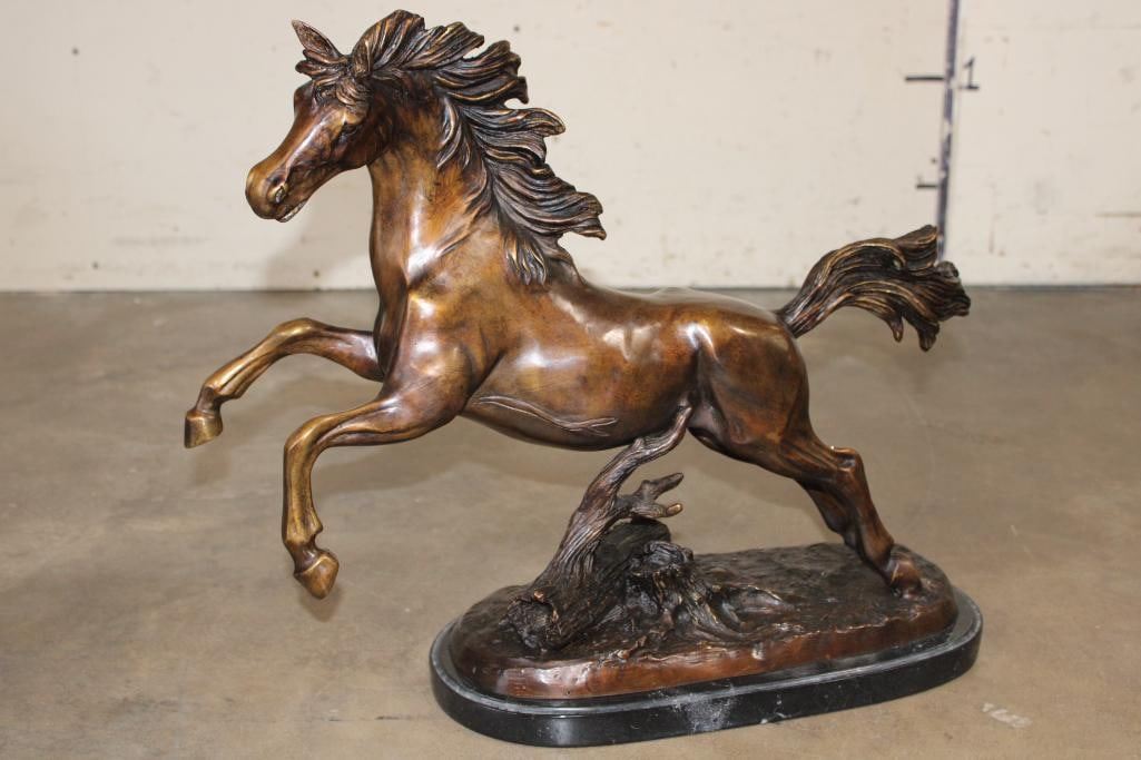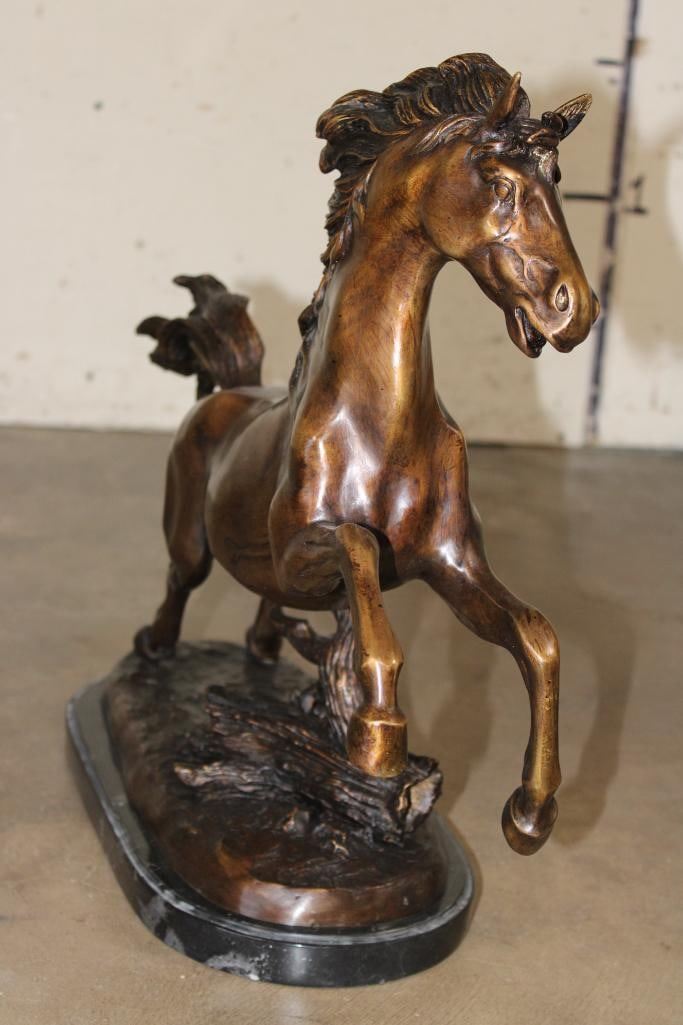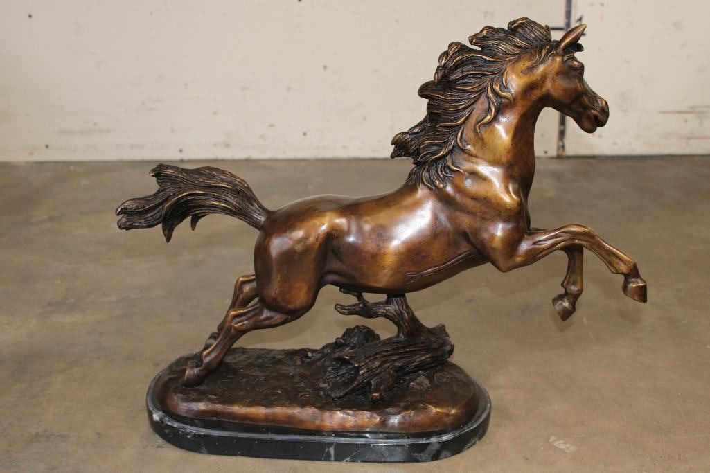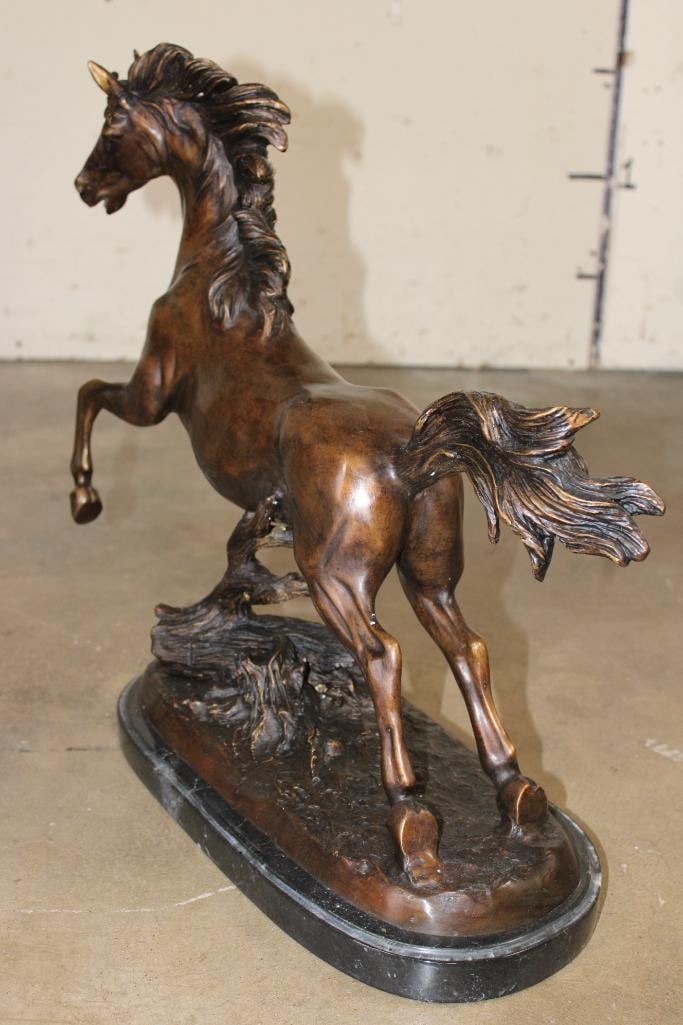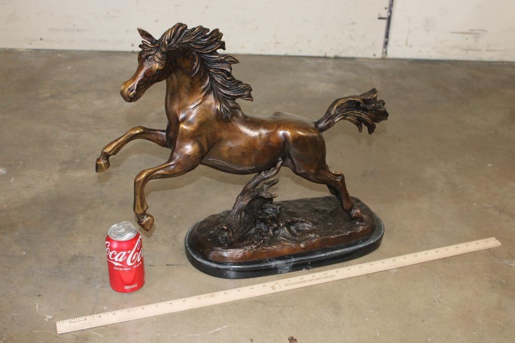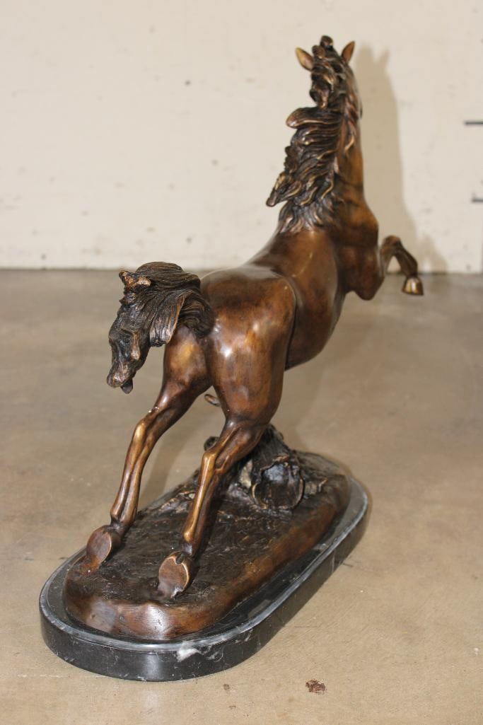 Big Bucking BRONCO Bronze Sculpture on a Marble Base. It measures 23" Long x 8" Wide x 19" Tall. The Total Weight is 31 lbs 12 oz. COLLECTIBLE BRONZE SCULPTURES AND STATUES