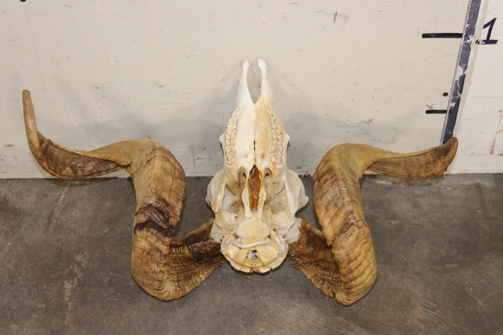 Nice and Big CORSICAN RAM Skull with All of its Teeth and a 23.5" Spread. TAXIDERMY