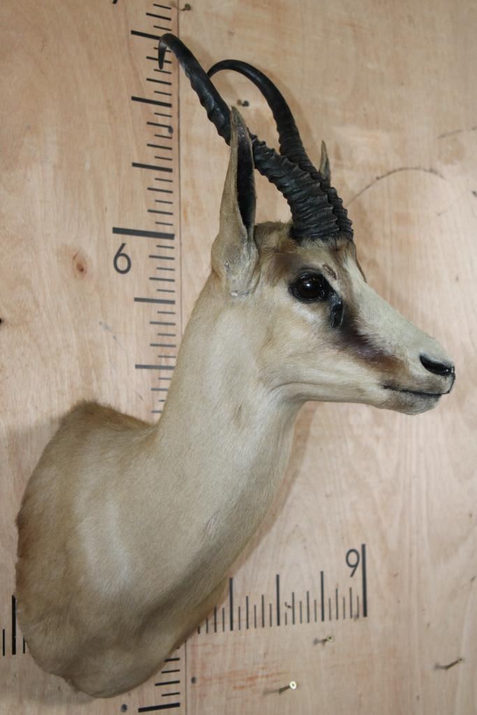 Big, Nice and Clean Copper SPRINGBOK Shoulder Mount. The Horns measure 13 5/8" Long and 13.5" Long. It is in Good Condition. TAXIDERMY
