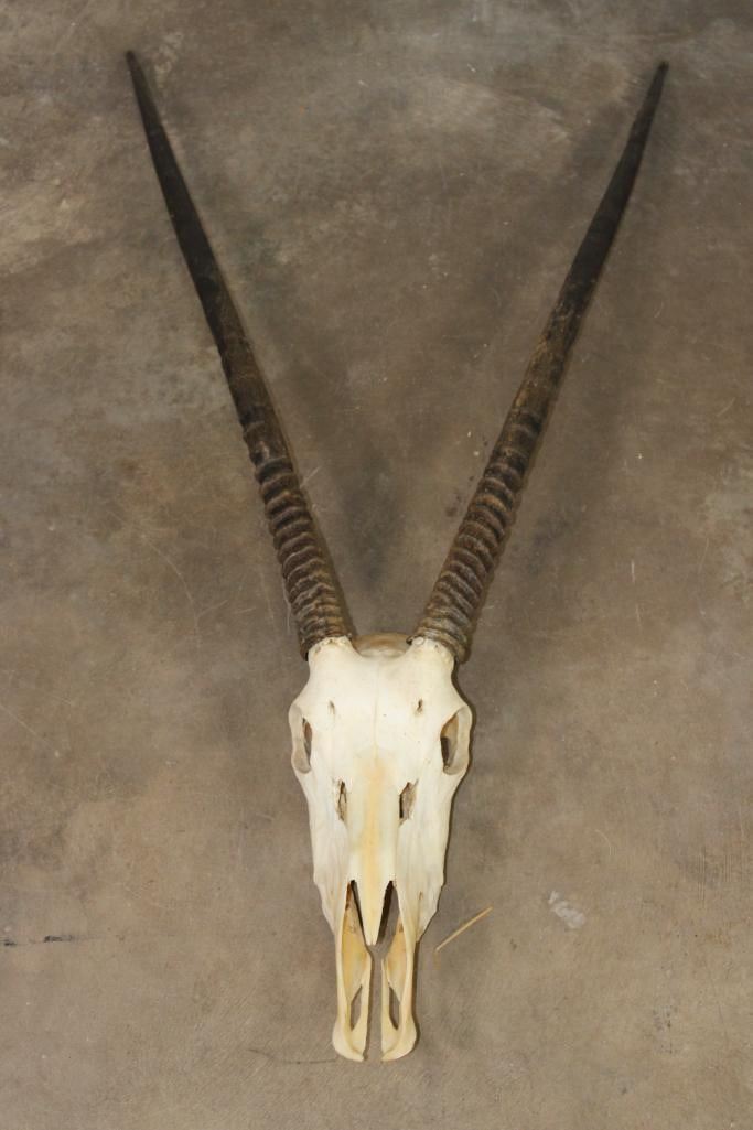 Big Euro Cut GEMSBOK Skull with Removable Horns. The Left Horn measures 33.75" Long and the Right Horn measures 34" Long. TAXIDERMY