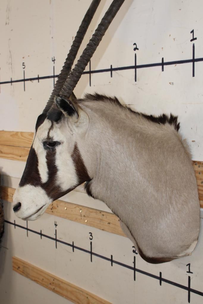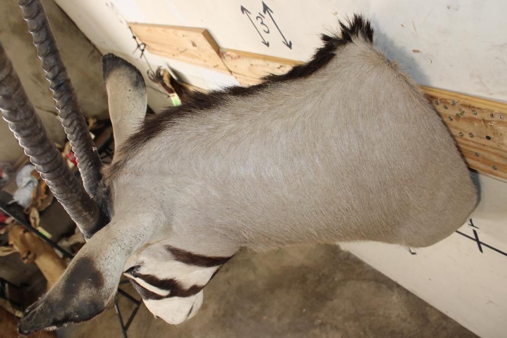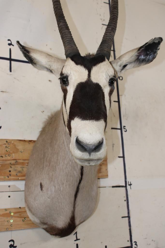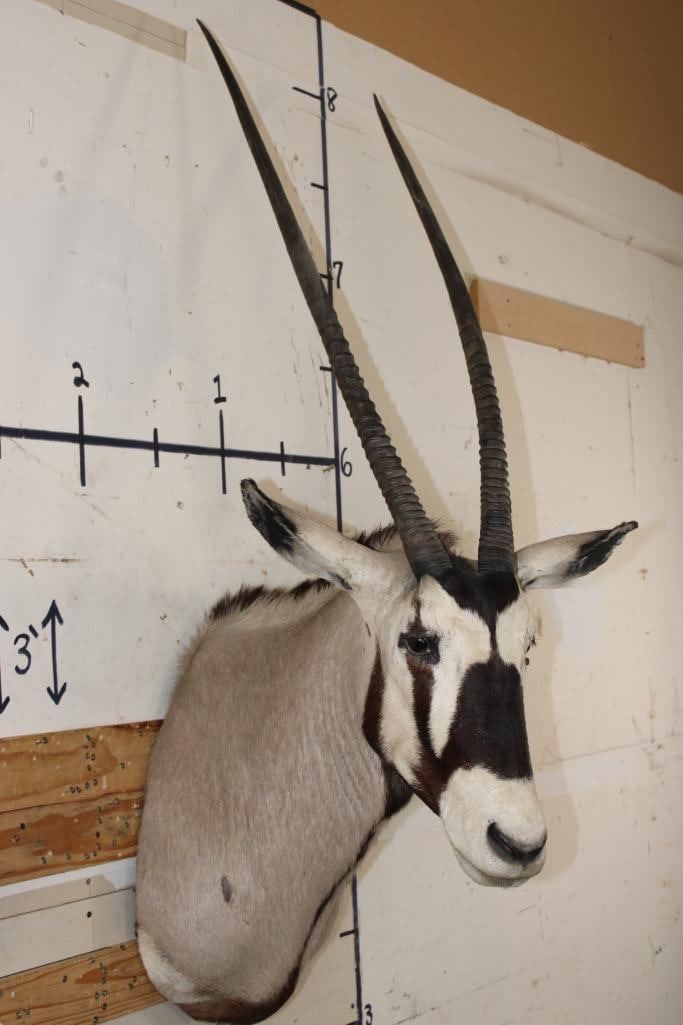 Big GEMSBOK Shoulder Mount in Good Condition. The Left and Right Horn measure 38" Long each. TAXIDERMY