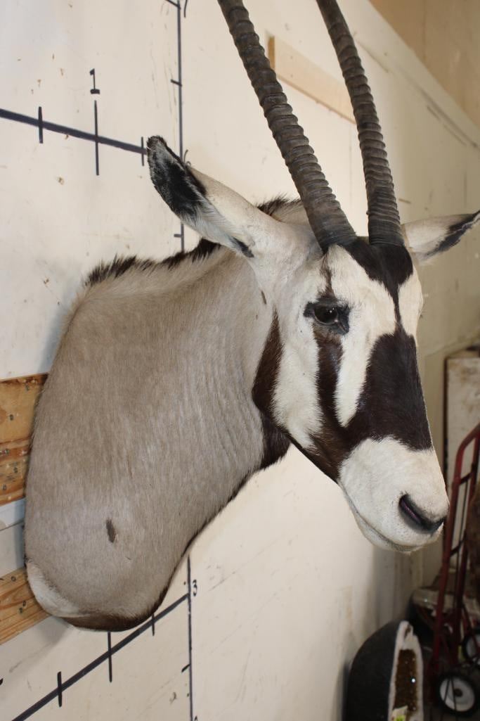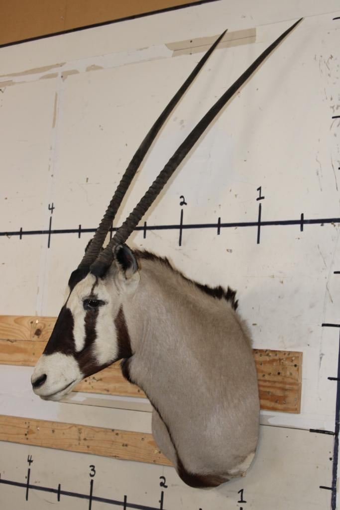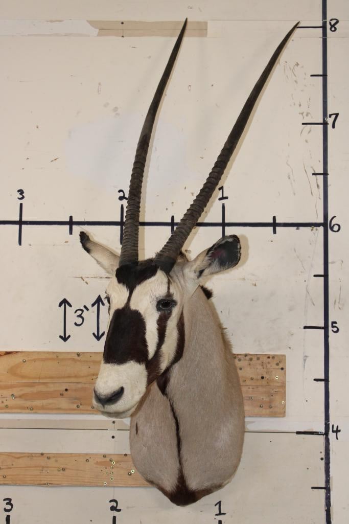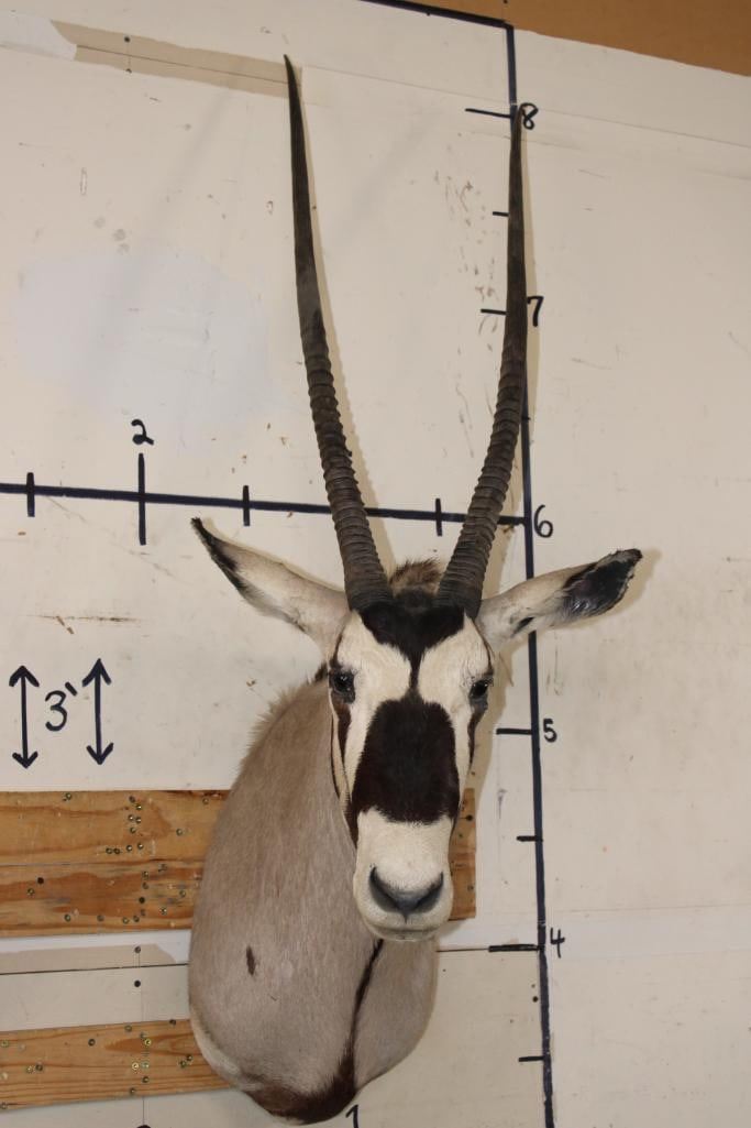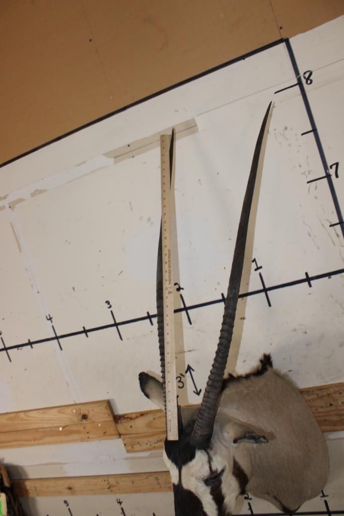 Big GEMSBOK Shoulder Mount in Good Condition. The Left and Right Horn measure 38" Long each. TAXIDERMY