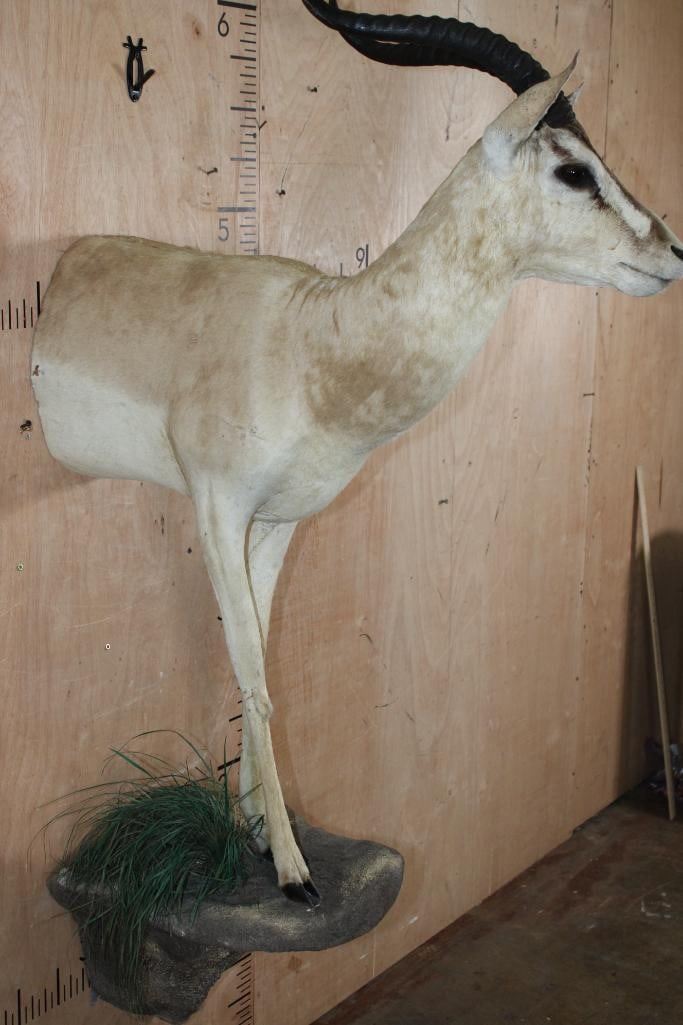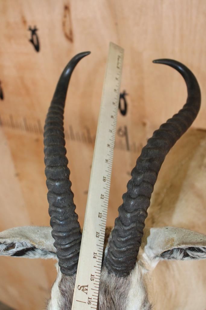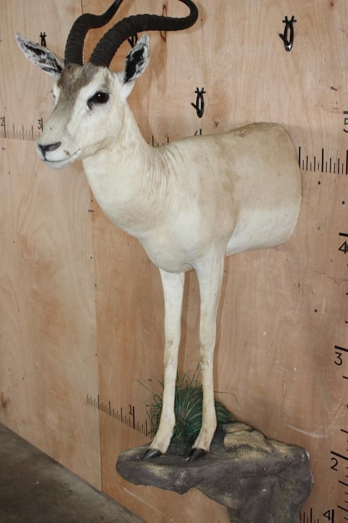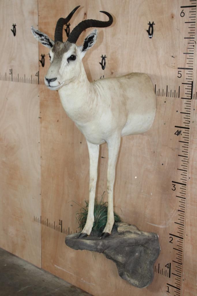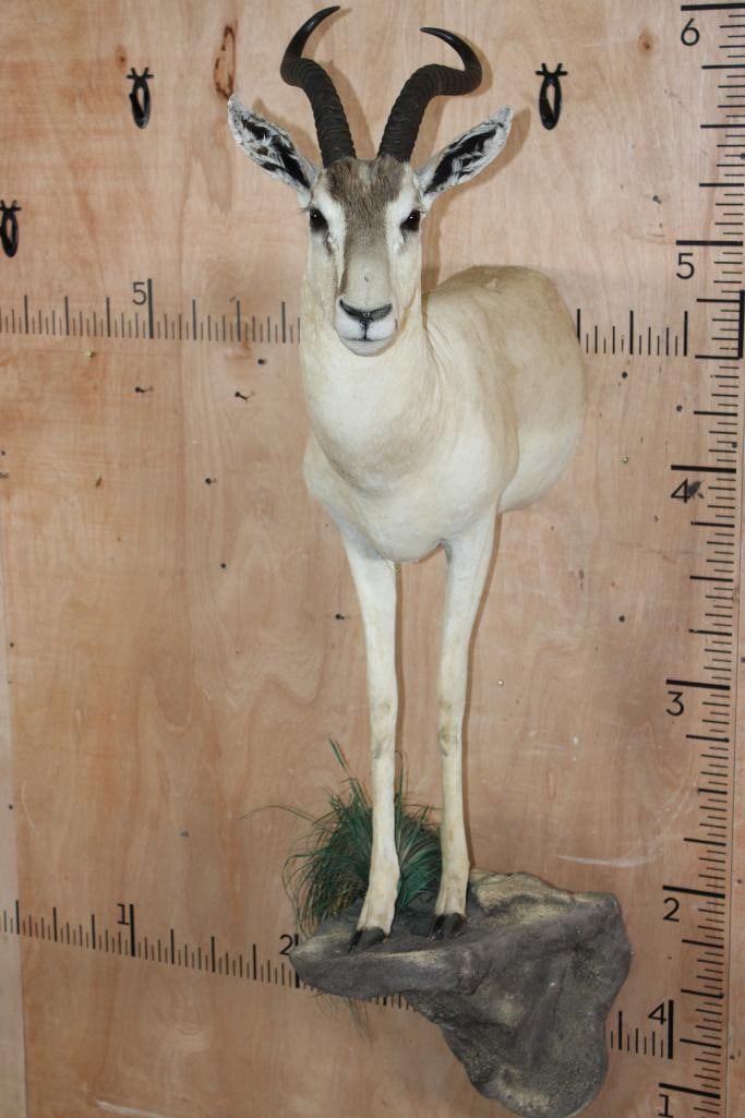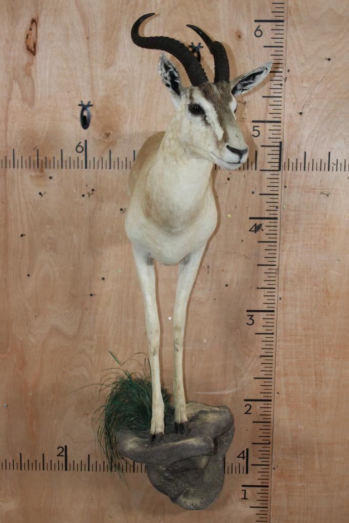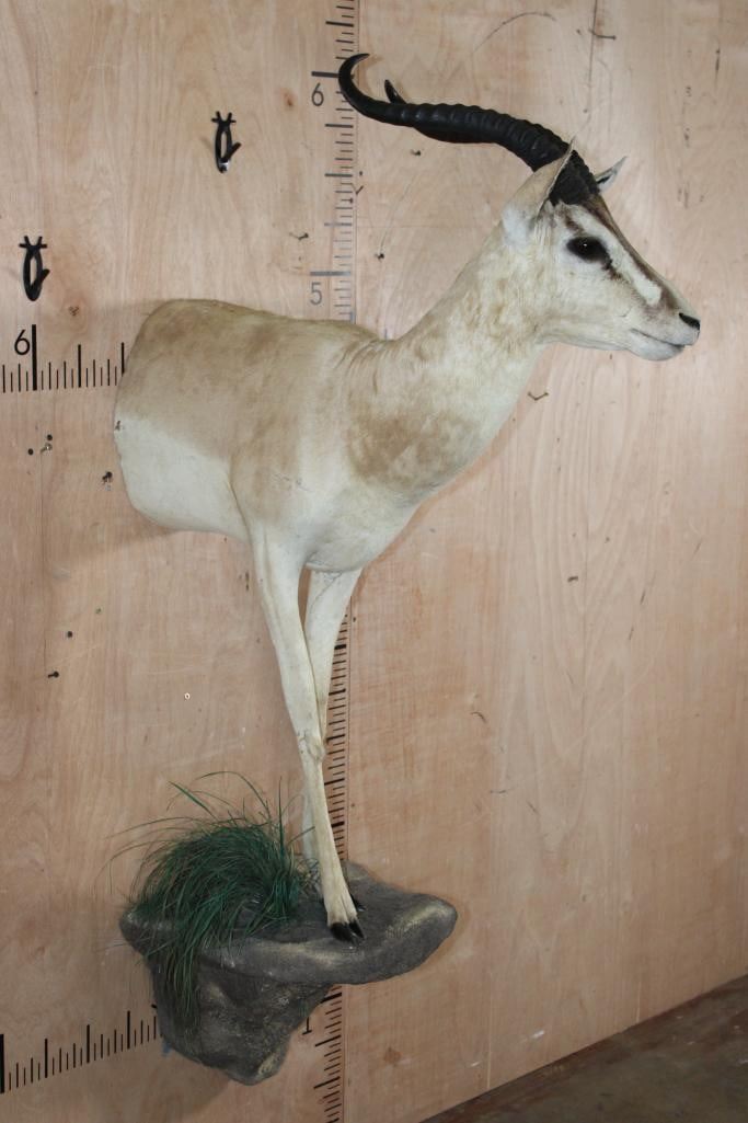 Very Nice, Clean, and Big Half-body SOEMMERRING'S GAZELLE. The Horns measure 17.75" and 18" Long. It is mounted on a simulated Rock Base and is in Very Good Condition. TAXIDERMY