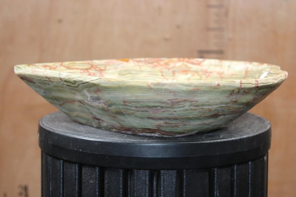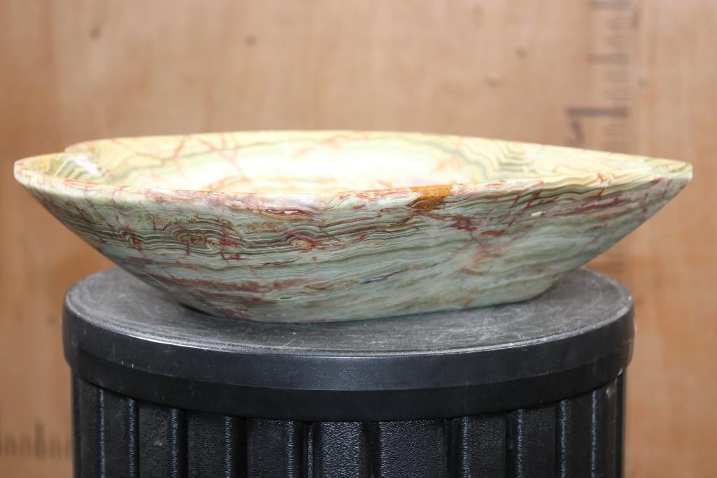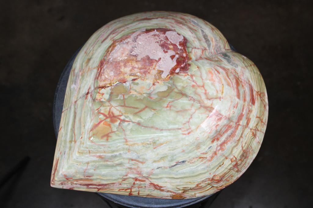 Big Heart Shaped Bowl Carved from a single piece of GREEN BANDED ONYX