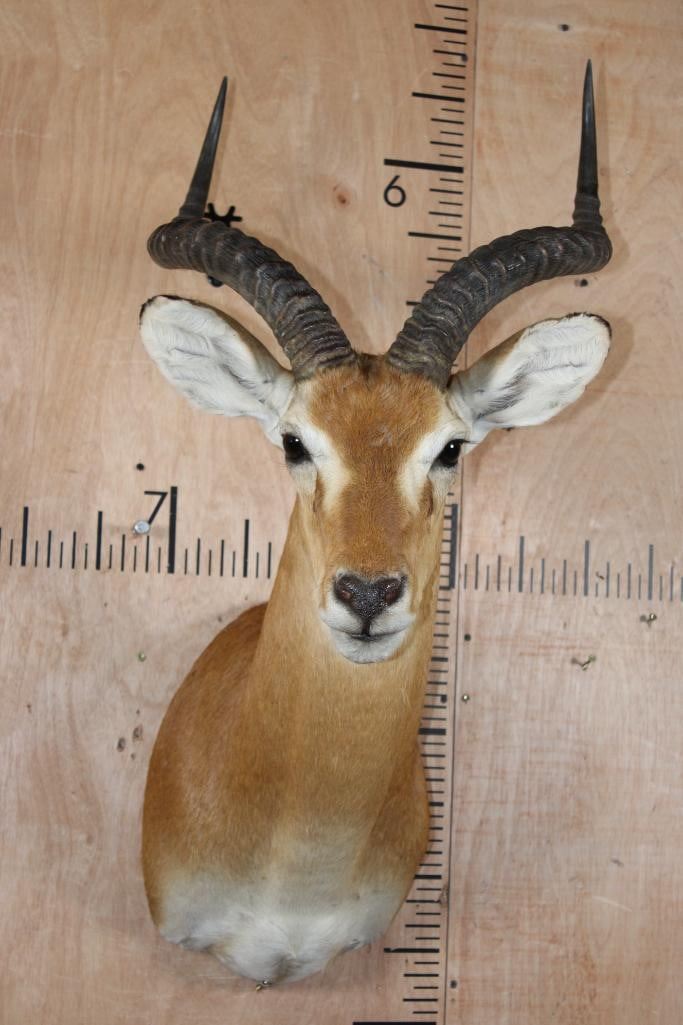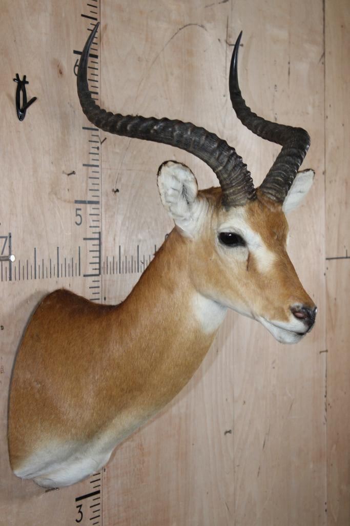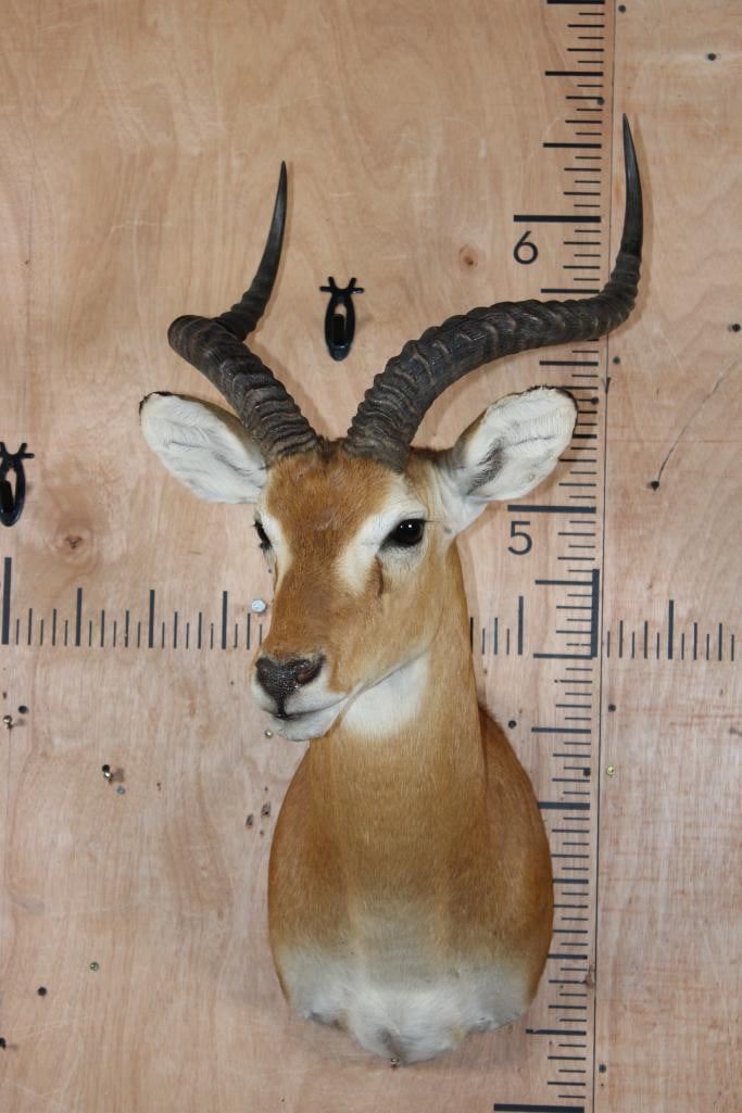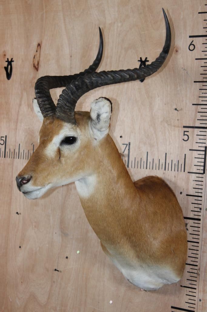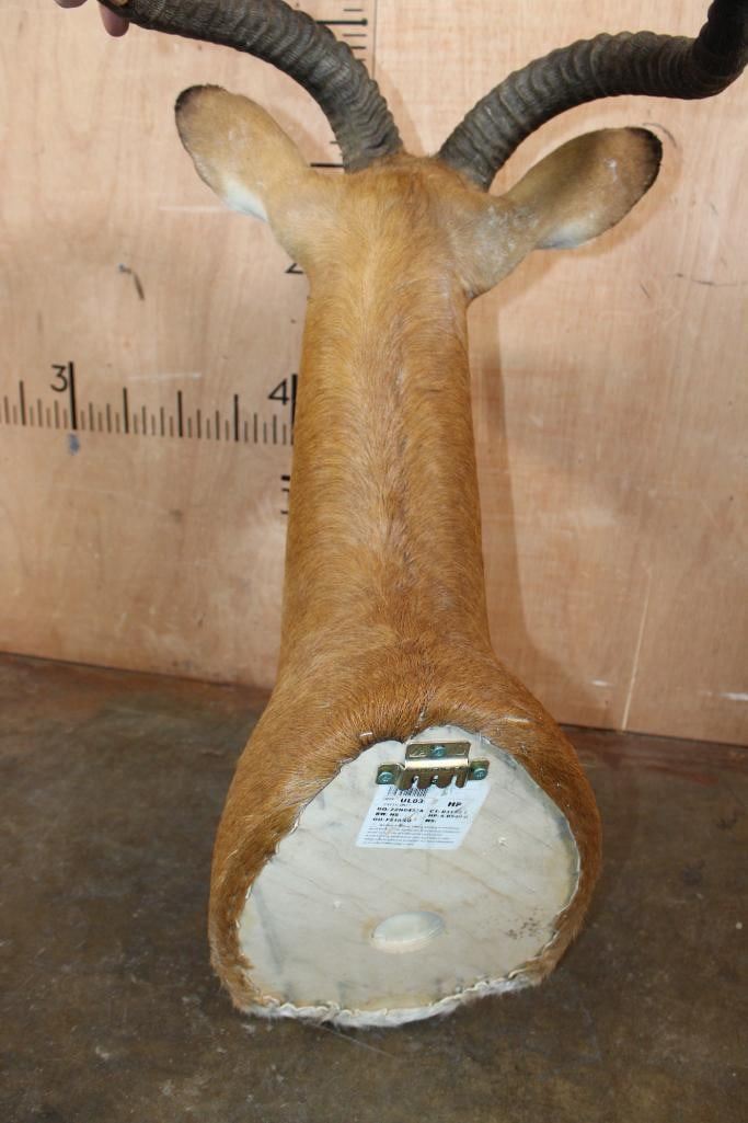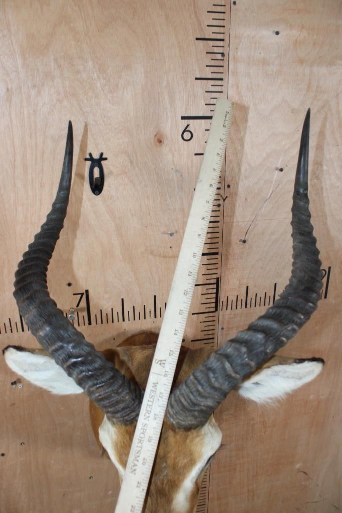 Very Nice, Clean, and Big KOB Shoulder Mount. The Right Horn measures 23.25" Long and the Left Horn measures 23 1/8" Long. It is in Very Good Condition. TAXIDERMY