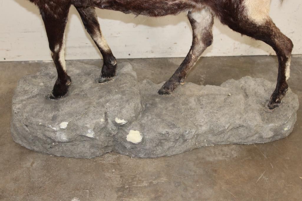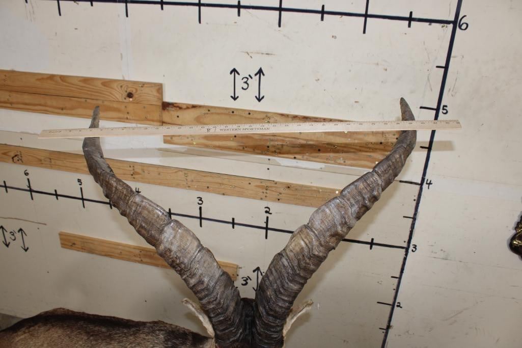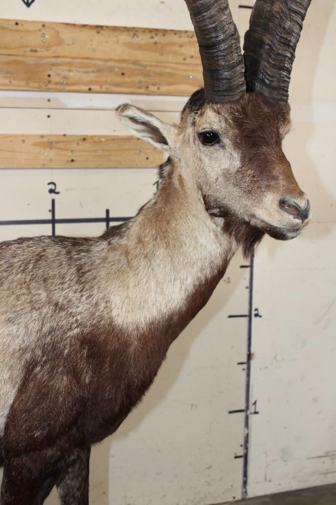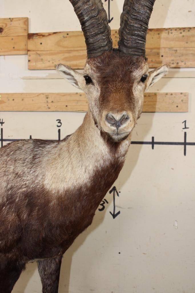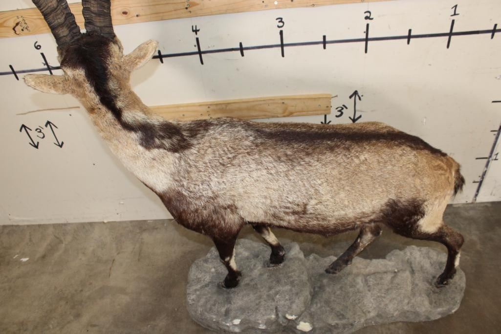 Very Nice, Clean, and Newer Life-sized GREDOS IBEX. The Left Horn measures 28.5" Long and the Right Horn measures 29.25" Long. It is on a light weight foam simulated Rock Base. The Total Mount measures 57" Long x 18" Wide x 67" Tall. It is in Good Condition. TAXIDERMY