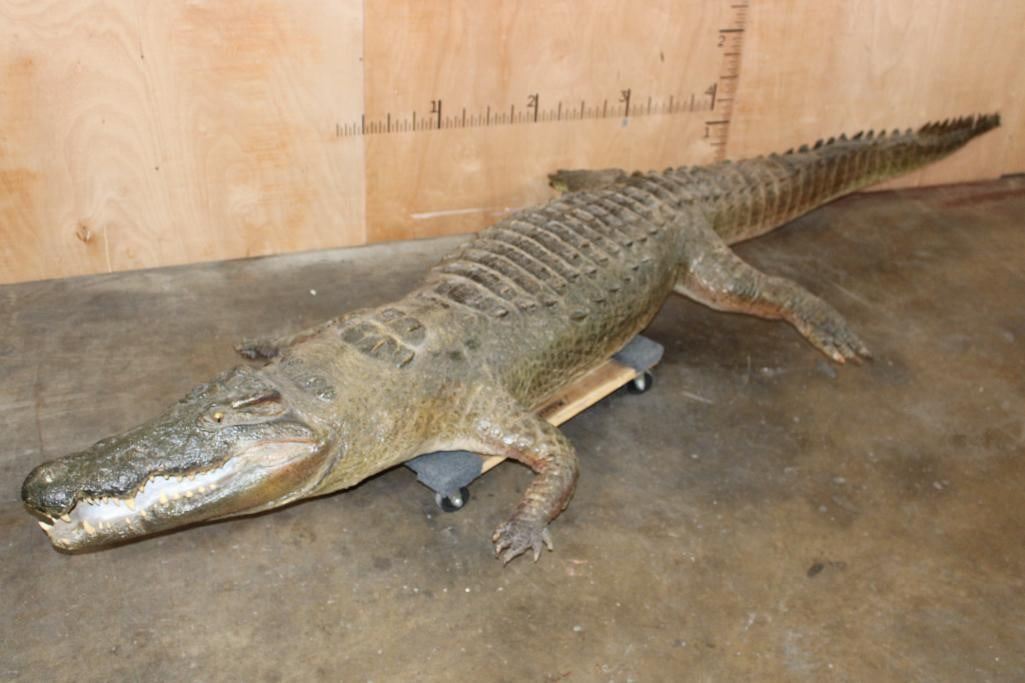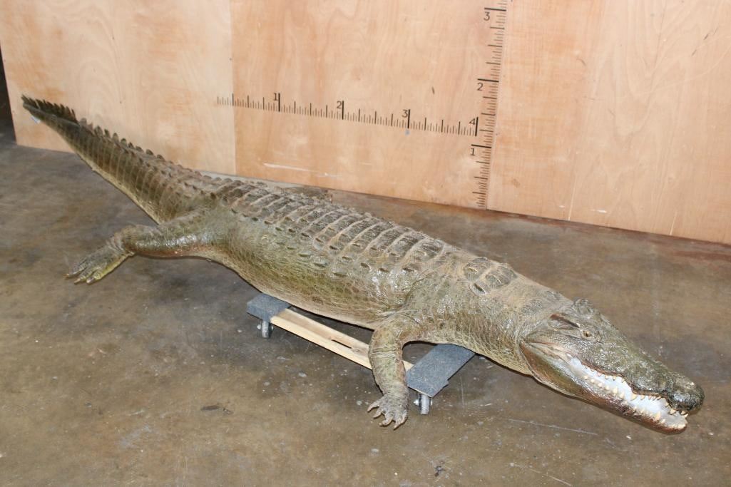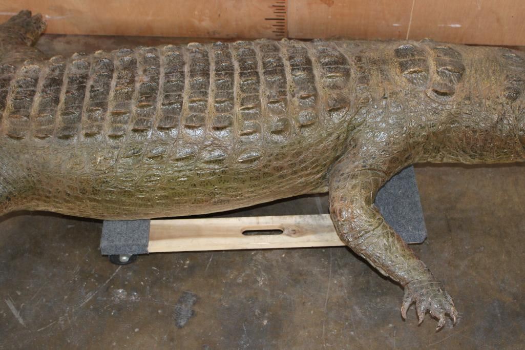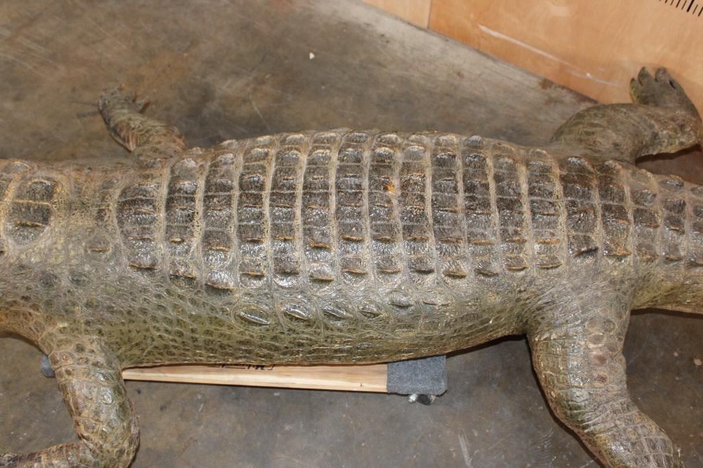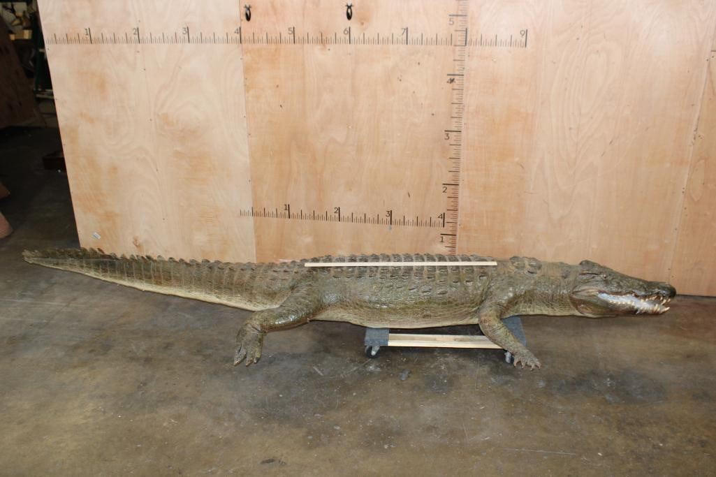 Big Life-sized *Real Skin* CROCODILE. It measures 11' 7" Long and is freestanding. There is some damage under the side of its belly, but the visible upper skin looks Good! TAXIDERMY