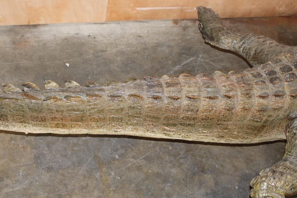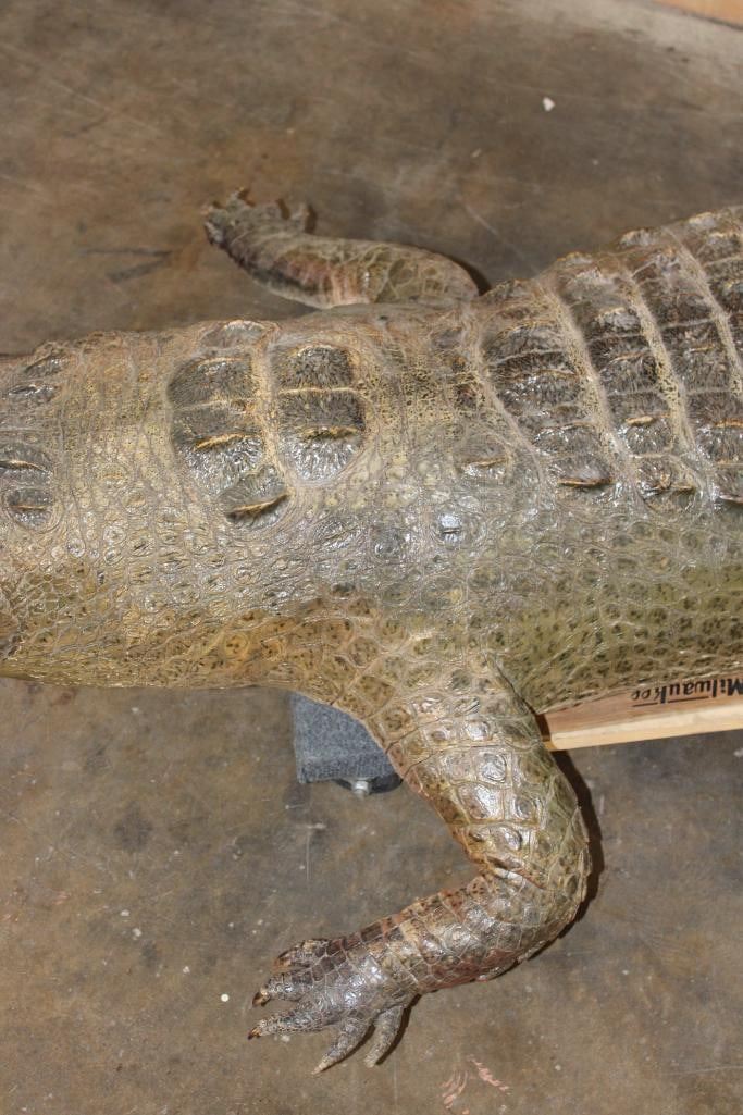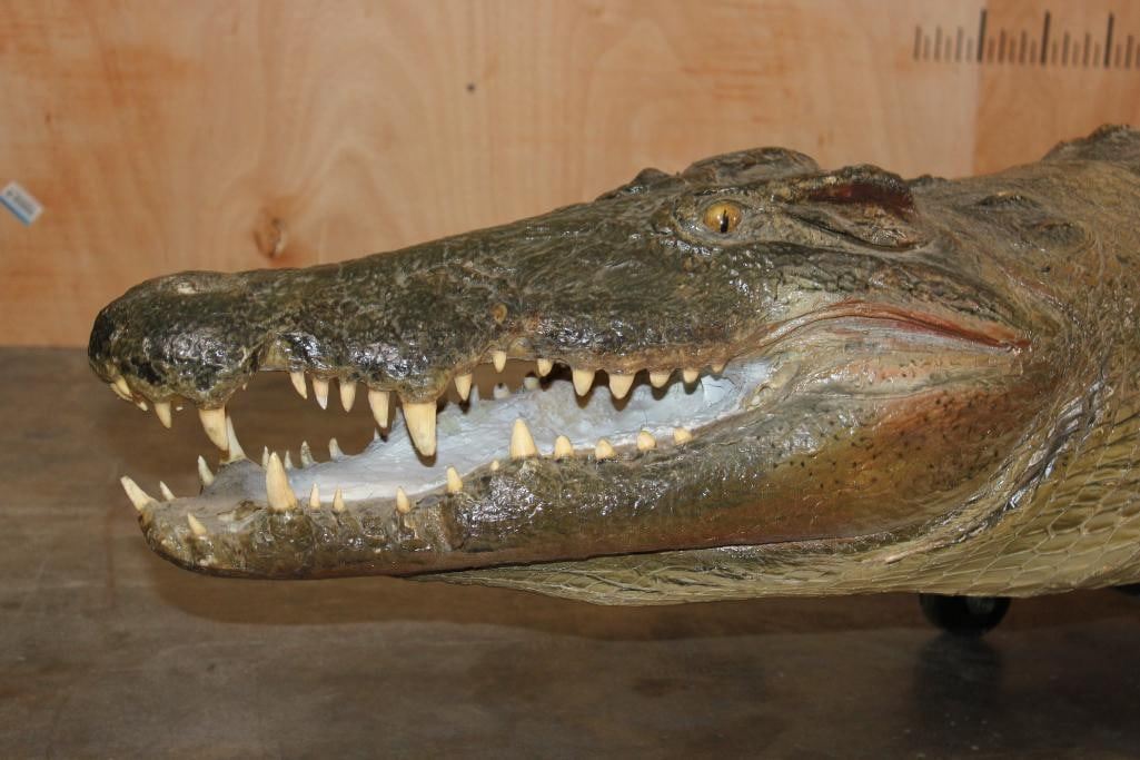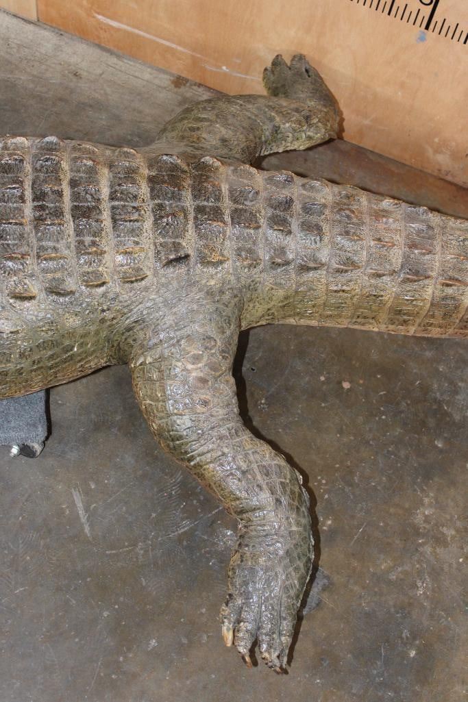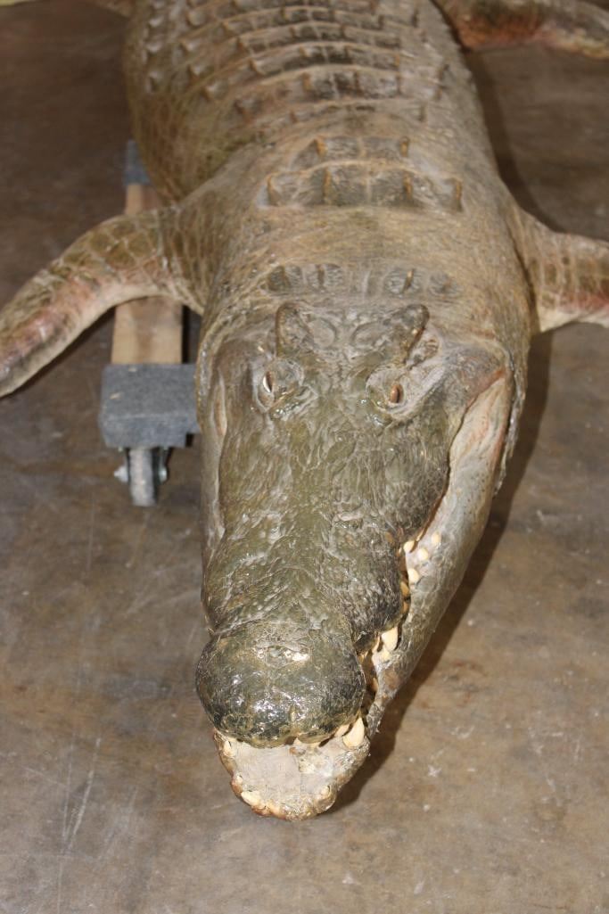 Big Life-sized *Real Skin* CROCODILE. It measures 11' 7" Long and is freestanding. There is some damage under the side of its belly, but the visible upper skin looks Good! TAXIDERMY