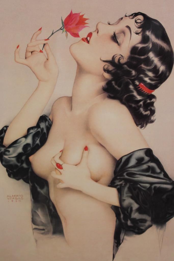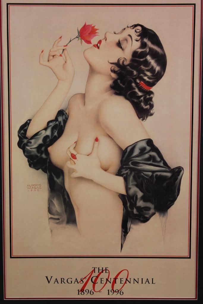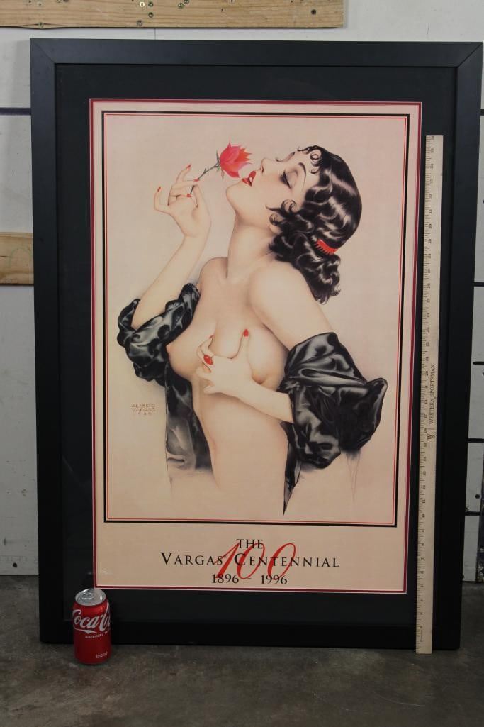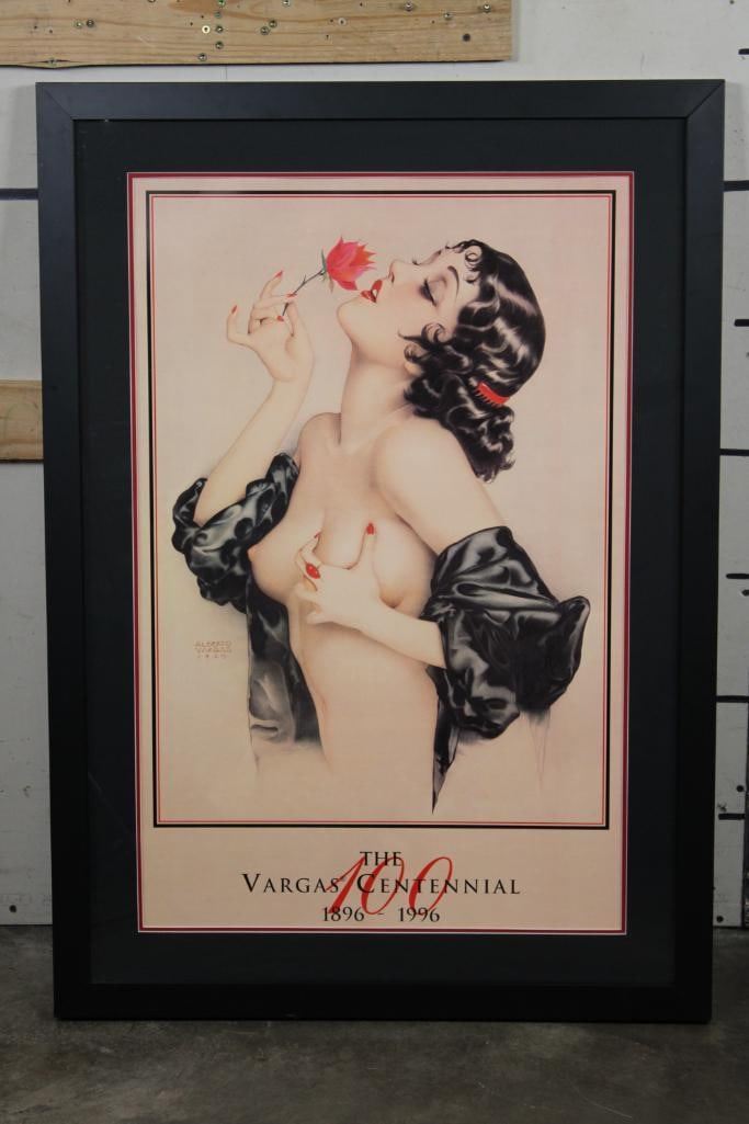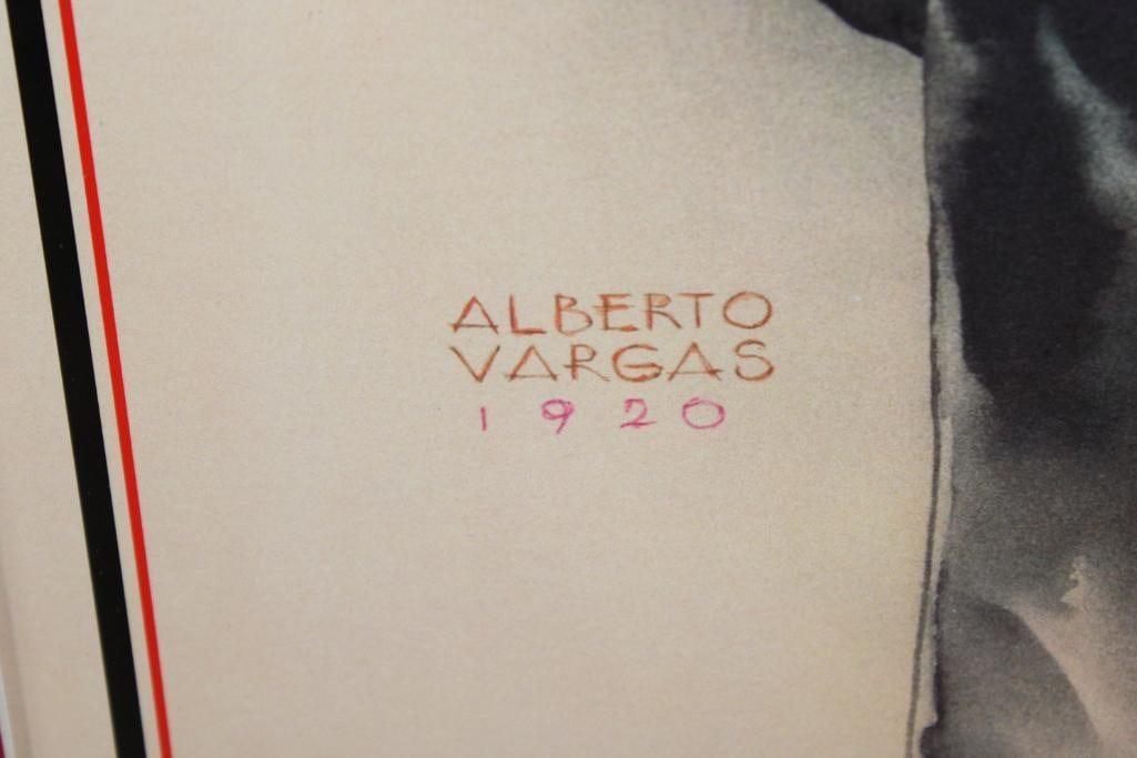 "Memories of Olive" Alberto Vargas Centennial 1896-1996 Pinup print. It is in a nice glass and metal frame that measures 42" Tall x 30" Wide. A classic image from 1920, "Memories of Olive" beautifully symbolizes the elegance and glamor we equate with the era in which she was painted. This is an idealized portrait of one of the Ziegfeld Follies' most famous and treasured stars, Olive Thomas. COLLECTIBLE ART PRINTS