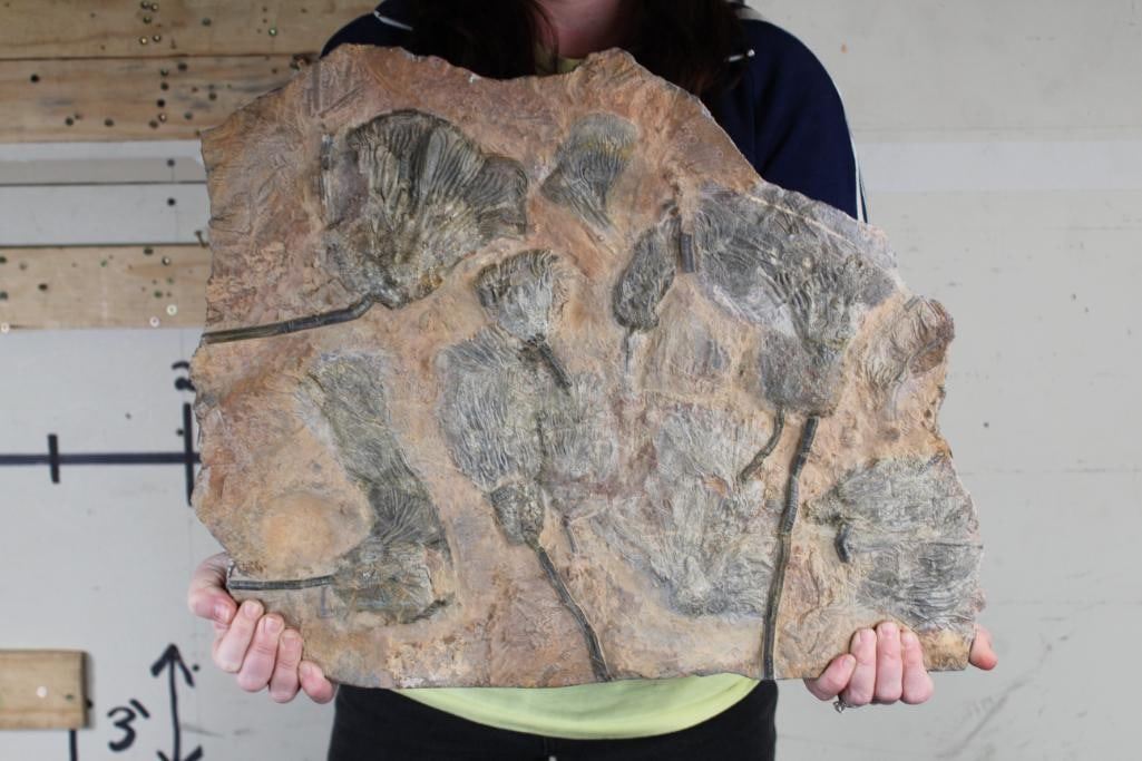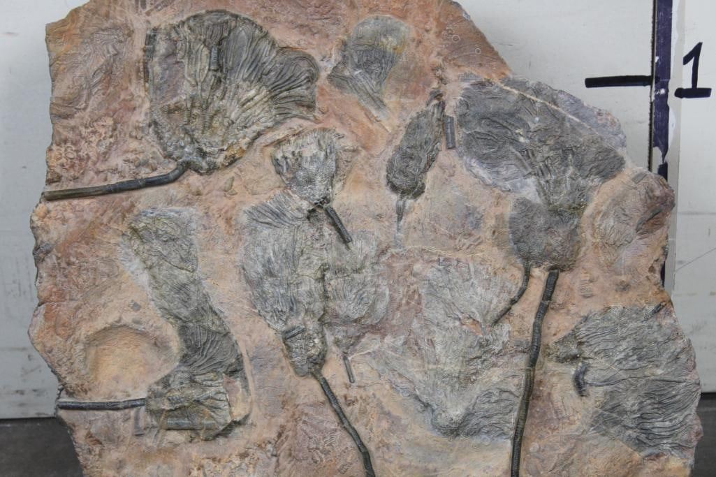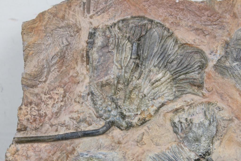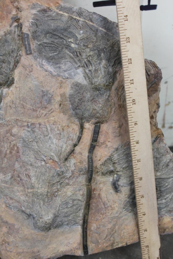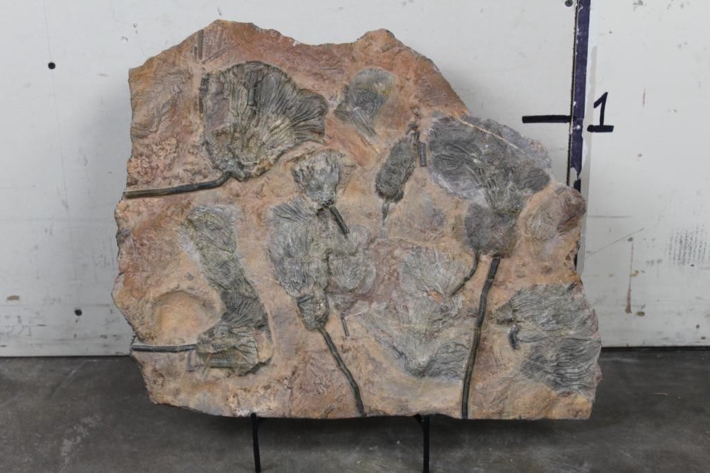 This BIG Fossil CRINOID Plate is of Scyphocrinites elegans, an extinct Crinoid found in Morocco. There are also other smaller organisms found throughout the specimen. Measures 16.75" Tall x 20.5" Wide x 1" Thick and Weighs: 19lbs. Crinoids are stunning, beautiful and perhaps one of life's most unusual animals. They are from the Devonian Period and are about 400 million years old. ROCKS FOSSILS MINERALS