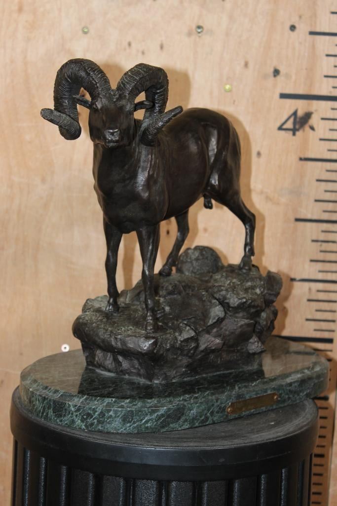 Big Original ARGALI RAM Bronze Sculpture "High Plains Drifter" by Roy Harris (American 20th Century). It is Numbered #435/950 and Weighs 29 lbs 6 oz. COLLECTIBLE BRONZE SCULPTURES