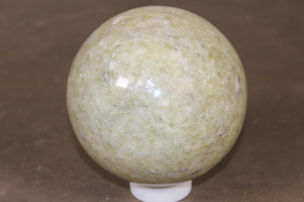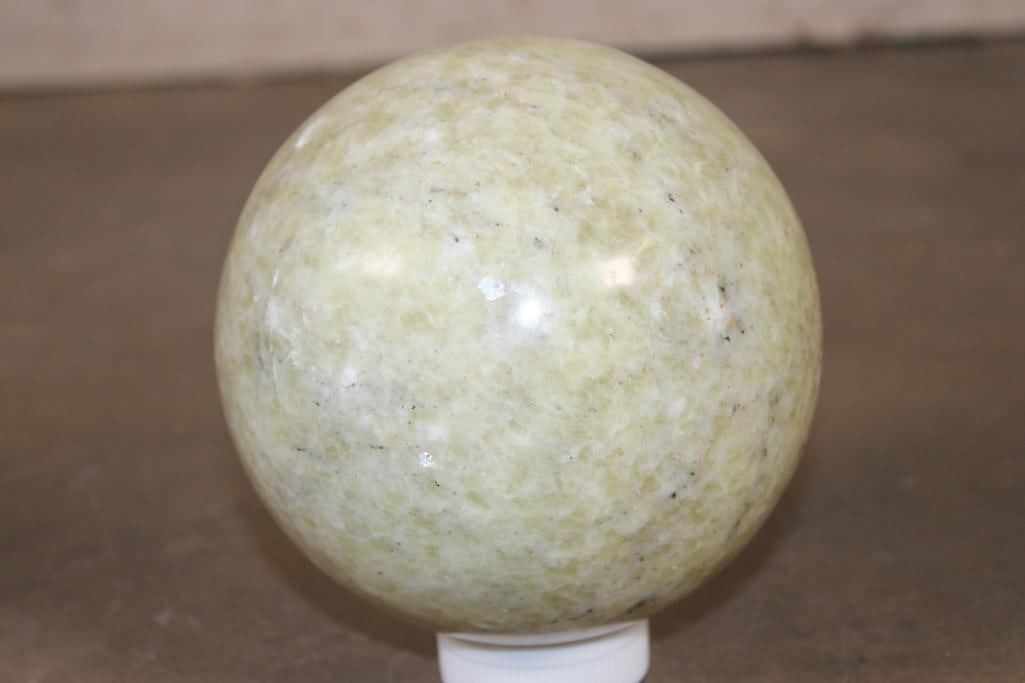 Big smooth and polished Light Green SERPENTINE Semi-precious Mineral Sphere or Crystal Ball. It measures 5 5/8" in Diameter and Weighs 9 lbs 7 oz. Serpentine is a healing stone that aids in meditation and spiritual exploration. ROCKS FOSSILS MINERAL SPHERES