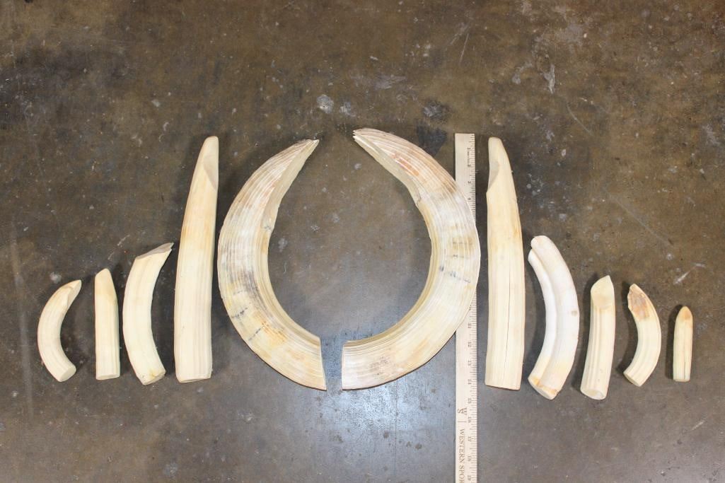 Big Set of 11 (missing 1) HIPPOPOTAMUS Ivory Teeth. Both of the Big Tusks have glue repairs. The Total Weight for all is 14 lbs 4 oz. TAXIDERMY