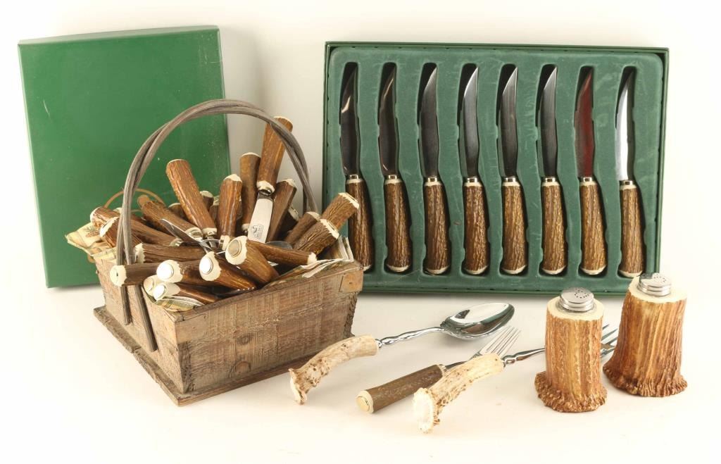 with Antler Handles. Stainless Steel.
