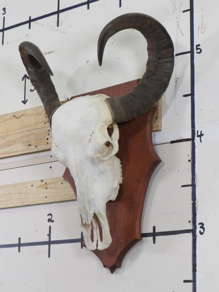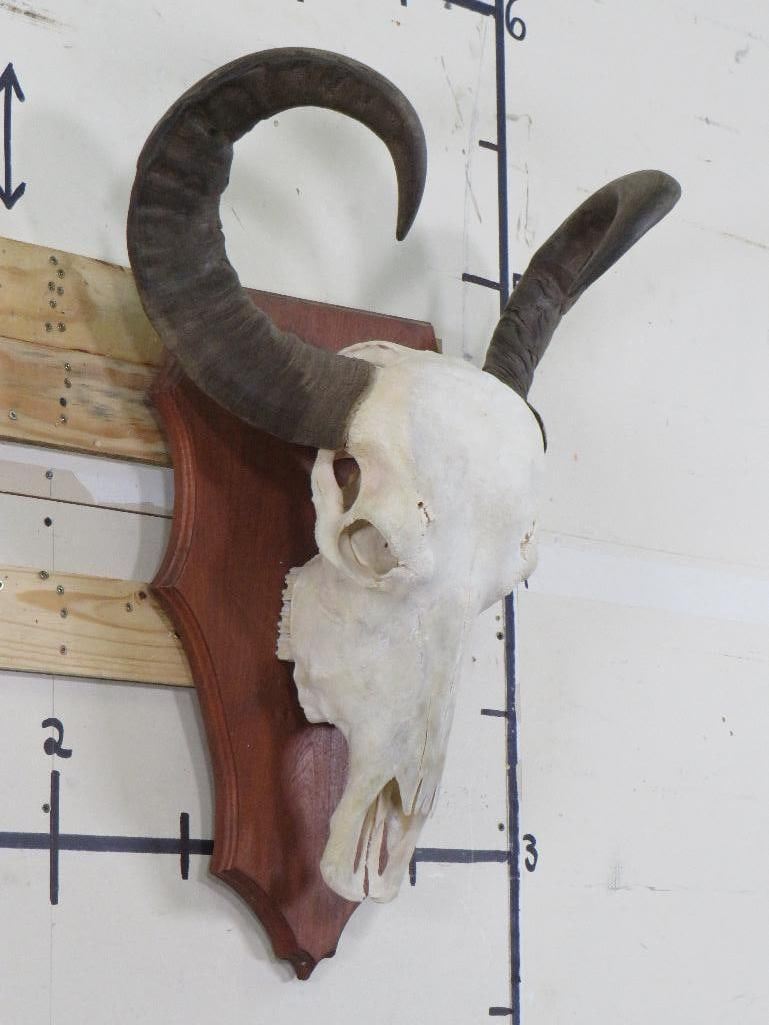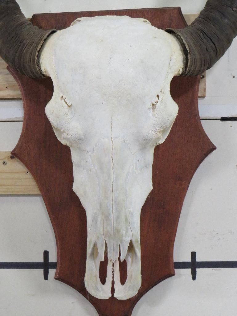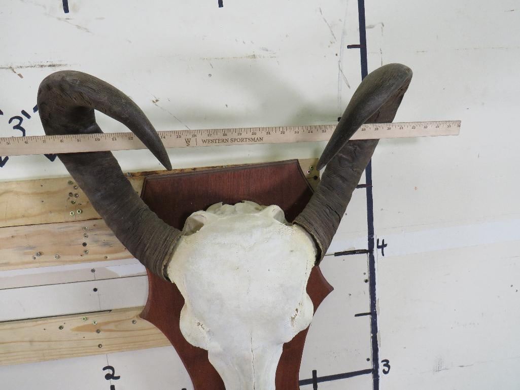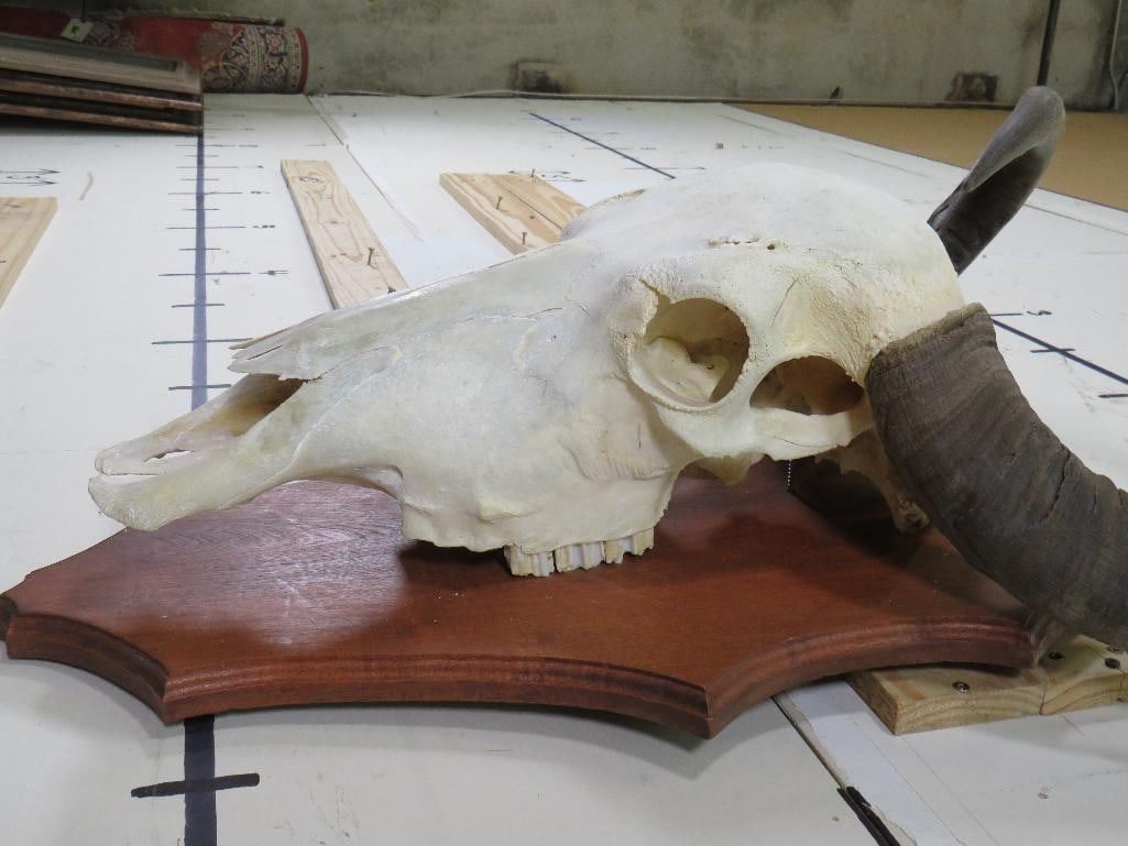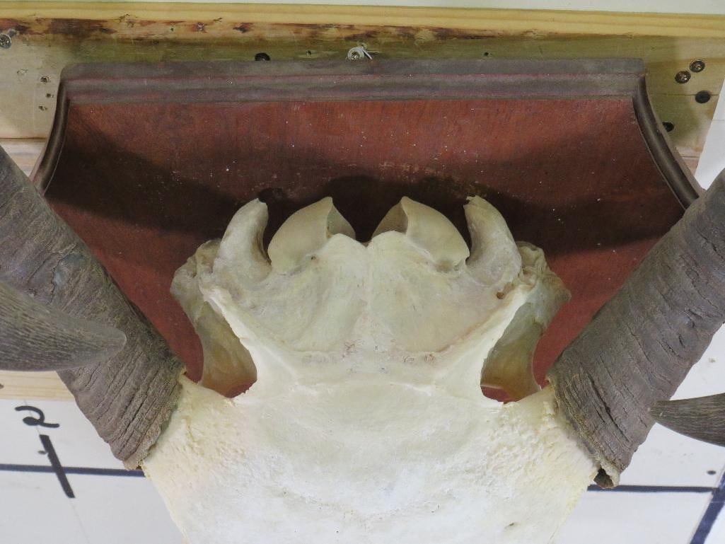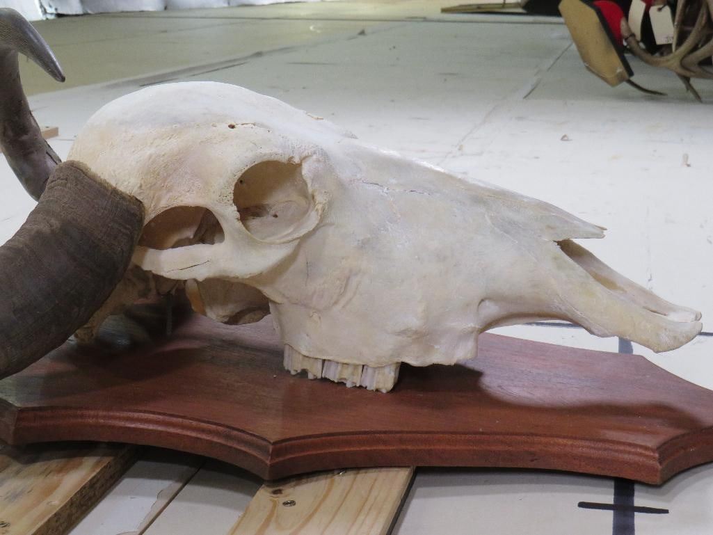 Big WATER BUFFALO Skull on Wooden Plaque with Removable Horns. Left and Right Horns Measure Approx.31.5"Long and Approx.9.5" Around each Horn Base. TAXIDERMY
