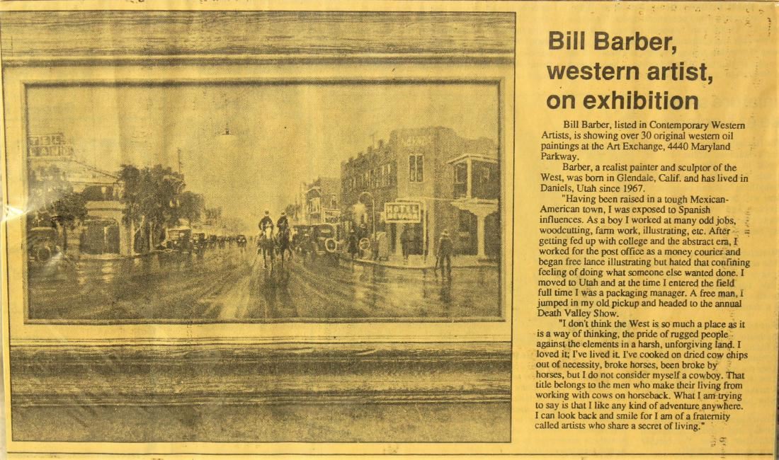 Highly collected oil on board, with great color and subject, titled "Old Glitter Gultch," professionally framed, with image measurements 12" x 24".