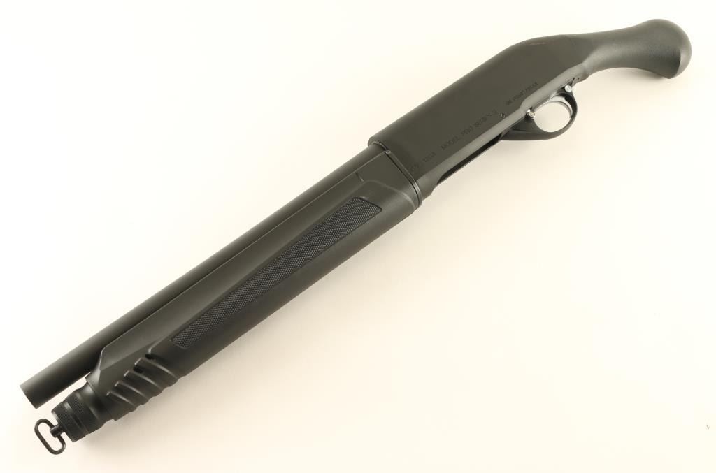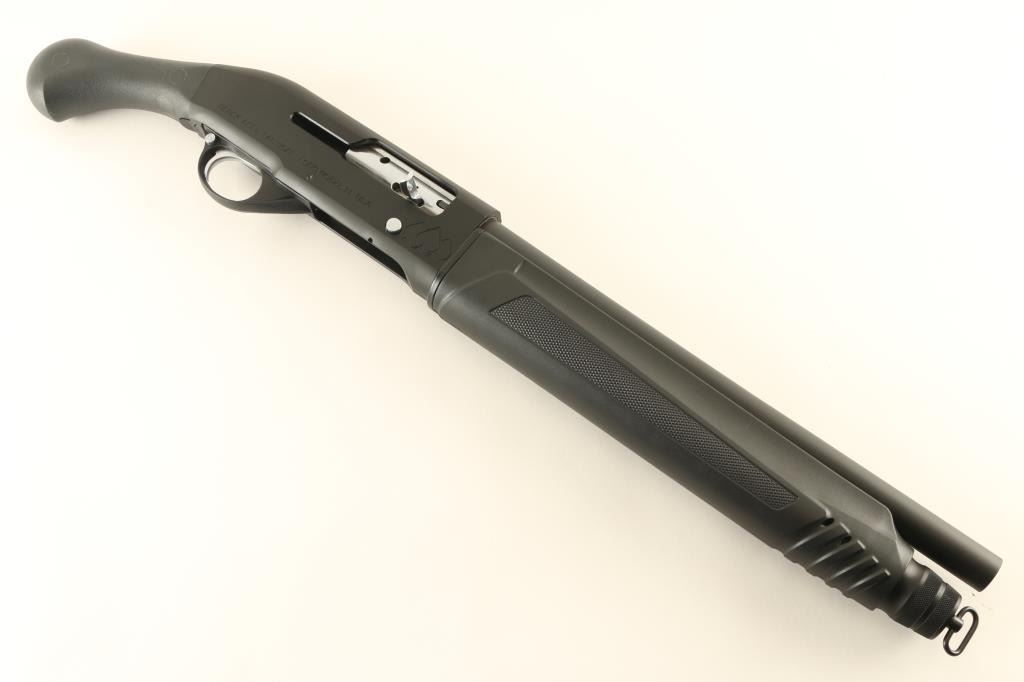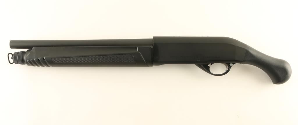 Sn: PSS02798AA Semiautomatic firearm fires 12 gauge shells. Features approx 14" barrel, 26.25" overall length, manual safety, tube magazine under barrel, matte black metal finish with silver accents at operating controls, black polymer furniture with paddle shaped grip (no stock), sling swivel at magazine tube cap, no rear swivel. Muzzle measures as "IC" choke using a gauge. Condition is like new with few signs of use or handling. Condition is NRA Excellent - like new *** Modern Firearm ***