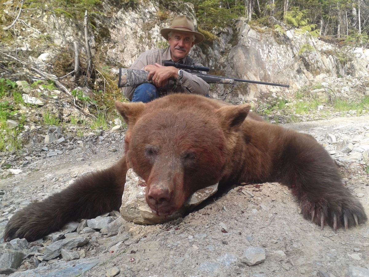 We offer Spring spot and stalk black bear hunts from the end of April to mid June. All of our hunts are 7 days long and we specifically try to target large male boars. Our mainland coastal bears offer approx. 20% color phase which differs our bears from the coastal bears on Vancouver Island which are all black. We offer an active hunt and will spend time hunting via truck, ATV and backpack with dedication put on glassing open areas. Our camp provides individual wall tents with the tents having raised wood floors, wood heat and a wood bunk style bed with a foam mat and pillow. Our camp also has an outdoor heated shower. We welcome any type of hunting (Archer, Rifle, Muzzleloader) except for handguns as we are not permitted to hunt in BC with handguns. The dates that I have offered are May 12-19th 2017 but we are flexible with the date and year that the hunt could take place depending on our other bookings. This hunt is for 1 bear and 1 hunter.
