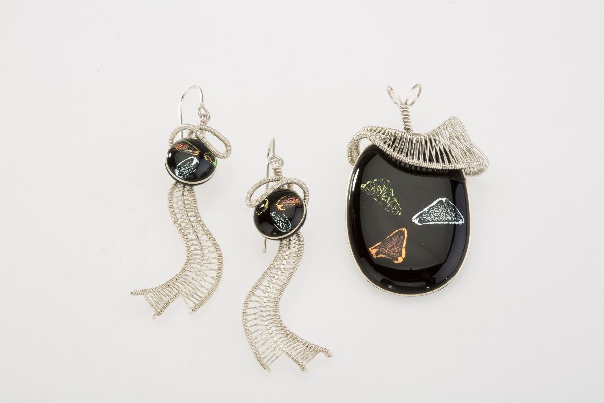 Our jewelry is all handcrafted, one at a time, in our home studio. Debra is the wire sculpture artist and Dana is the fused glass artist and tool smith. We enjoy merging our talents to enhance each other’s work to create signature pieces of art. The highest quality materials possible are used to create lasting affordable art that can be enjoyed everyday. To create dazzling one of a kind earrings, pendants, necklaces and bracelets we use 90 COE dichroic and stained glass, 14KT gold-filled and argentium sterling silver wire and Swarovski Austrian crystals for color accents.