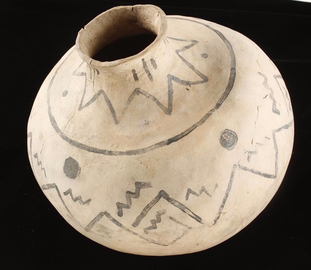 Early Olla from Dove Creek, CO. 850-950 A.D. Measures 13"x13", has been repaired. Includes Statement of Authenticity and Origin of Artifact.