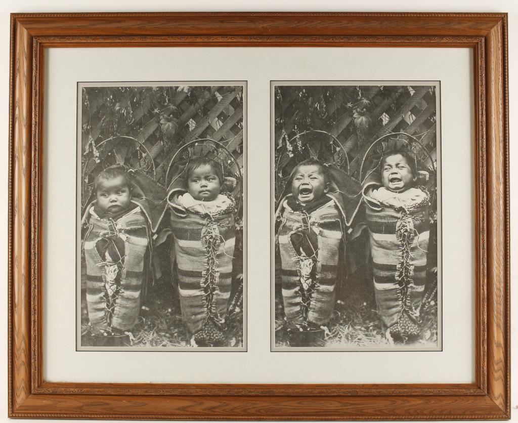 Two pair in Papooses with different facial expressions. Two separate photos in double mats with nice wood frames. Each image measures 9 1/2"x15 1/2".