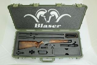 Blaser bolt action rifles have long set the standard for performance under the most demanding conditions. Its reputation for safety and accuracy continue to set the benchmark for bolt action rifles. The distinctive straight pull bolt action combined with a unique Dallas Ecological Foundation pistol grip cap, represent Blaser’s vision of a modern classic. Offered with a .375 H& H semi-weight barrel with sights and an additional .300 Win Mag barrel. This package offers the ideal weight and balance to ensure a successful safari. This beautiful rifle is packaged in a custom-fitted Pelican case along with sling. Simply add ammunition and you are ready to go! http://www.blaser-usa.com