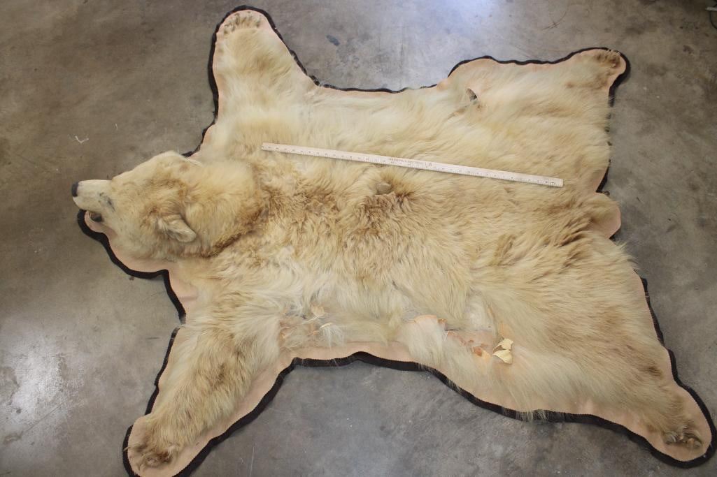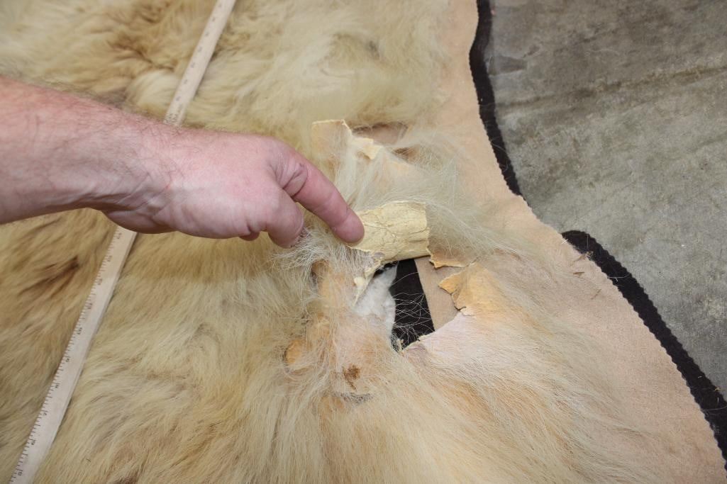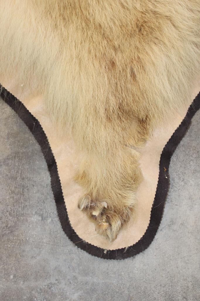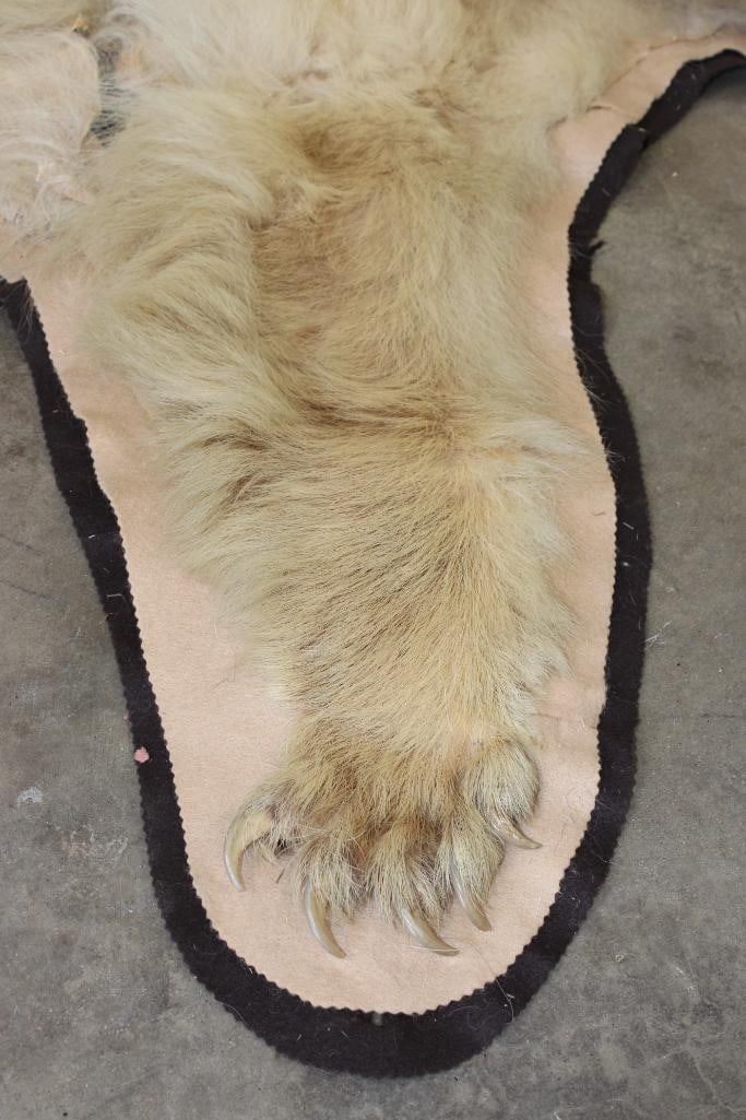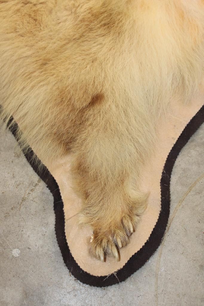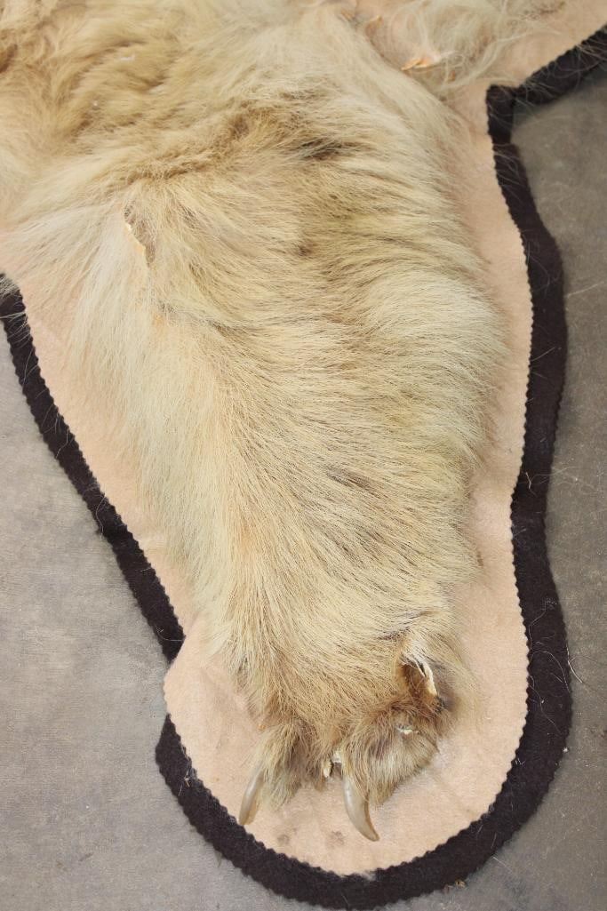 Blonde Phase BLACK BEAR Rug. It has 13 Claws and is in rough condition. It measures 6' Long x 5' 8" Wide. TAXIDERMY