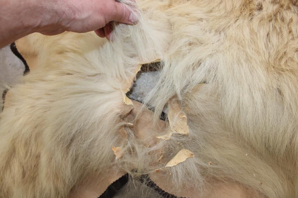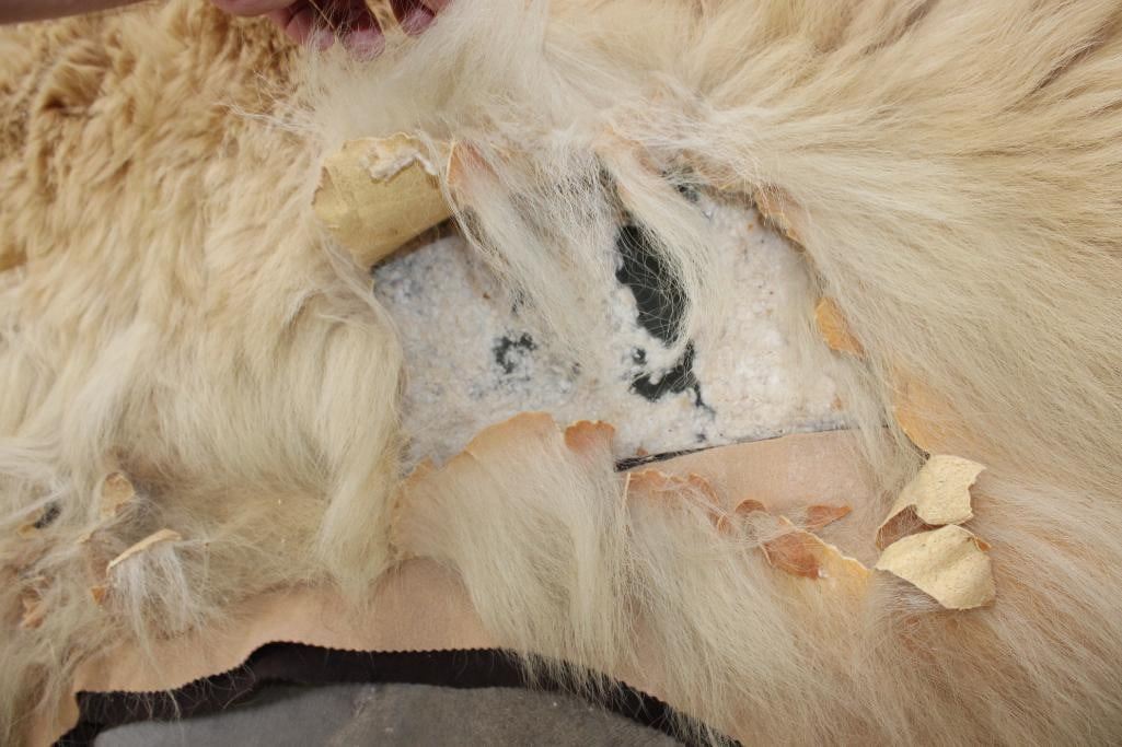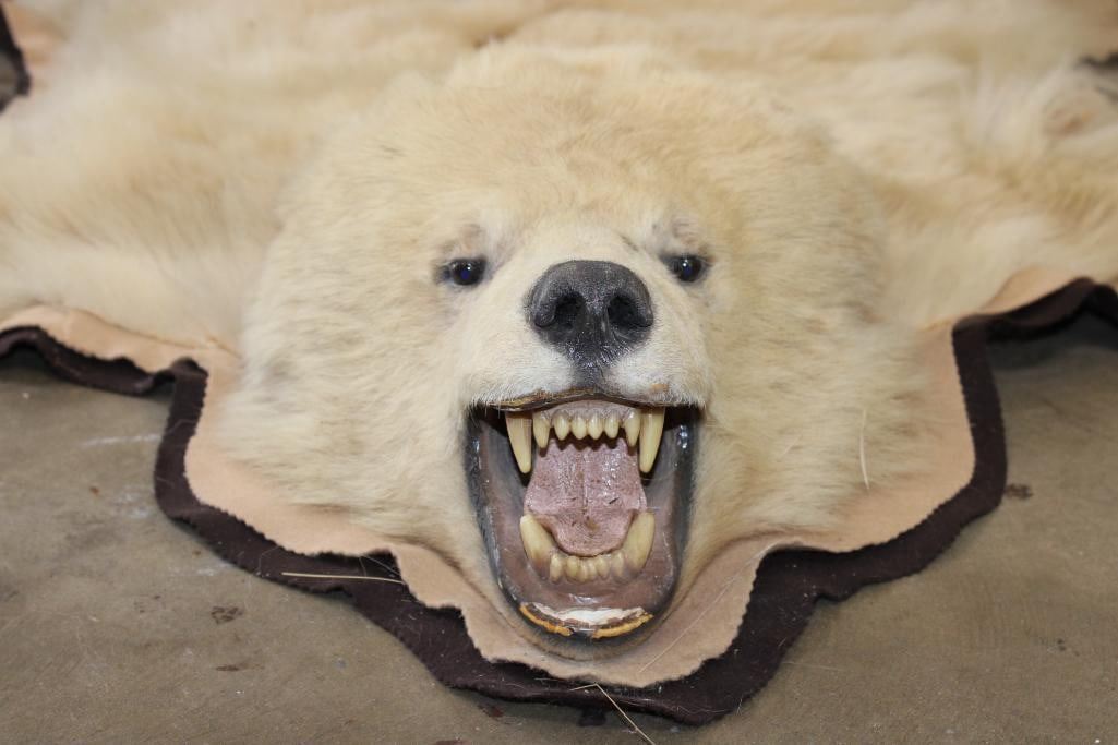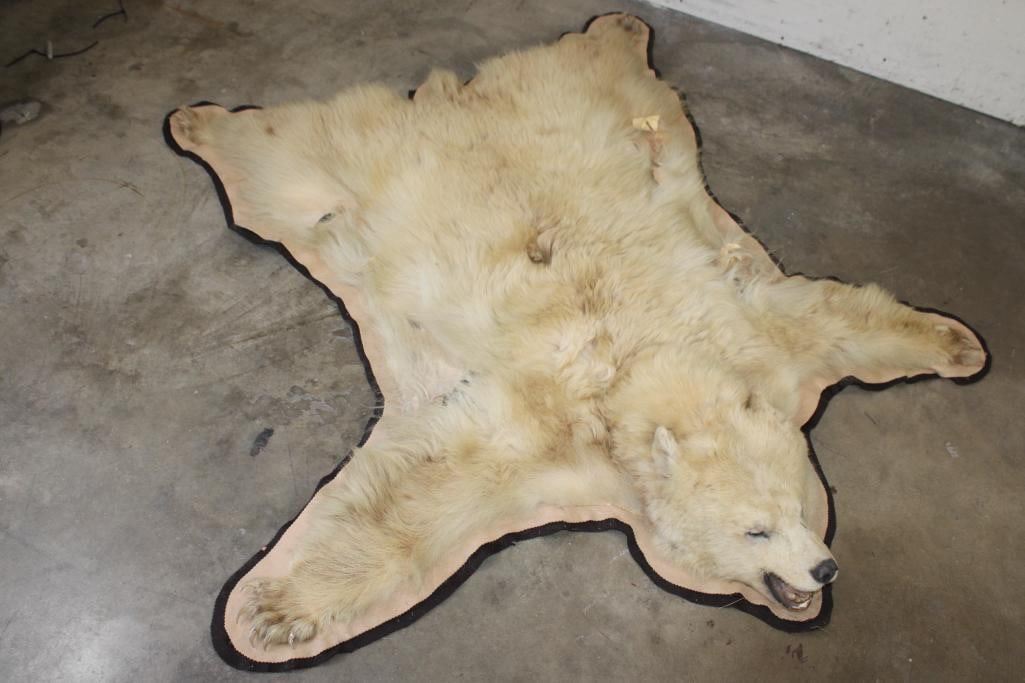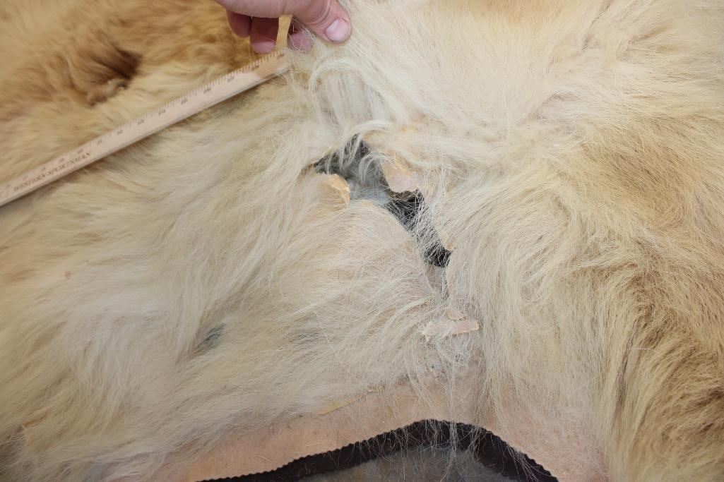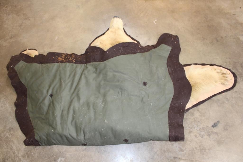 Blonde Phase BLACK BEAR Rug. It has 13 Claws and is in rough condition. It measures 6' Long x 5' 8" Wide. TAXIDERMY