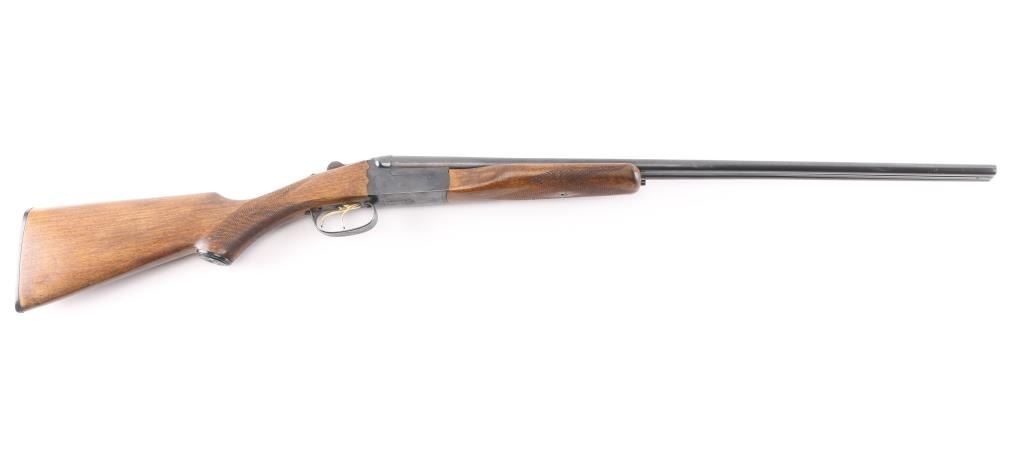Brazilian SxS break open shotgun imported by FIE, Miami FL, accepts up to 3" 410 shells. Top lever. Features 26" barrels, front bead, sliding tang safety, gold toned double triggers, blued finish, wood stock & forend with checkering at wrist & forend. Bores appear very good, need cleaning. Bluing is very good with minor scratches/edge wear. Wood is good/sound condition. Barrels lock-up tight. LOP is 14 1/4" to front trigger.NRA Condition-Very Good. Modern Firearm.
