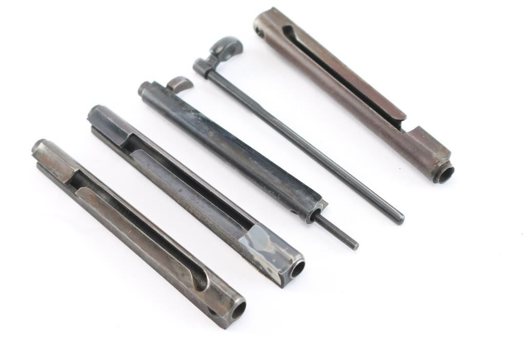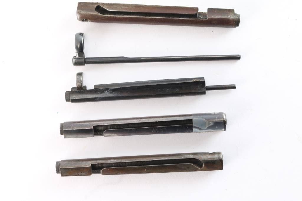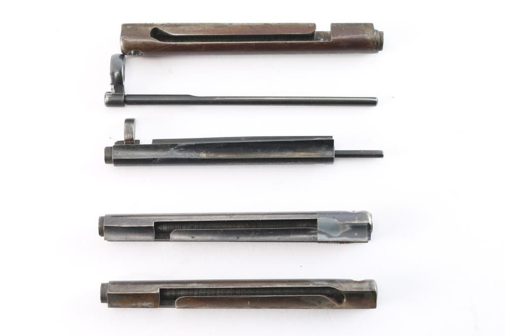 A. Very good to near fine Colt Lightening 1877 housing with rod. B. 2 good plus ejector rod housing 1st Gen. black powder. C. 1st Gen. ejector rod housing - repaired and welded at end. D. Unidentified ejector rod - fine. Possible repro. John Kopec estate collection.