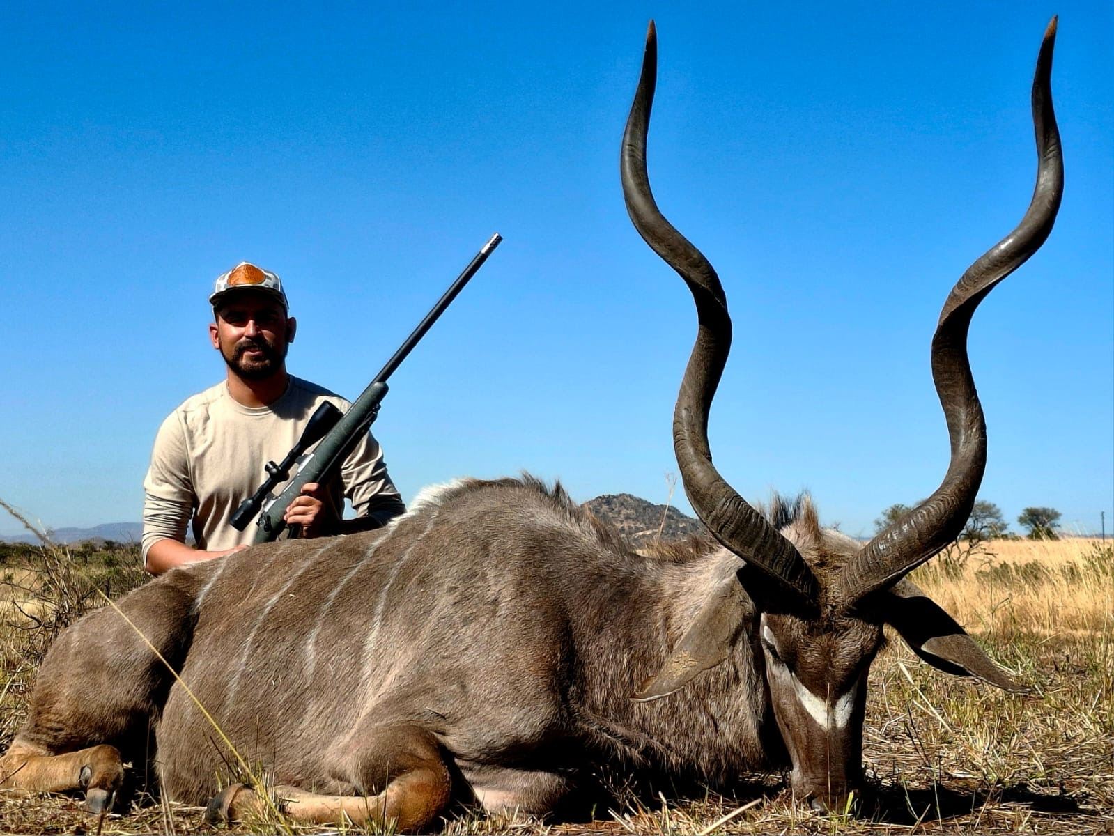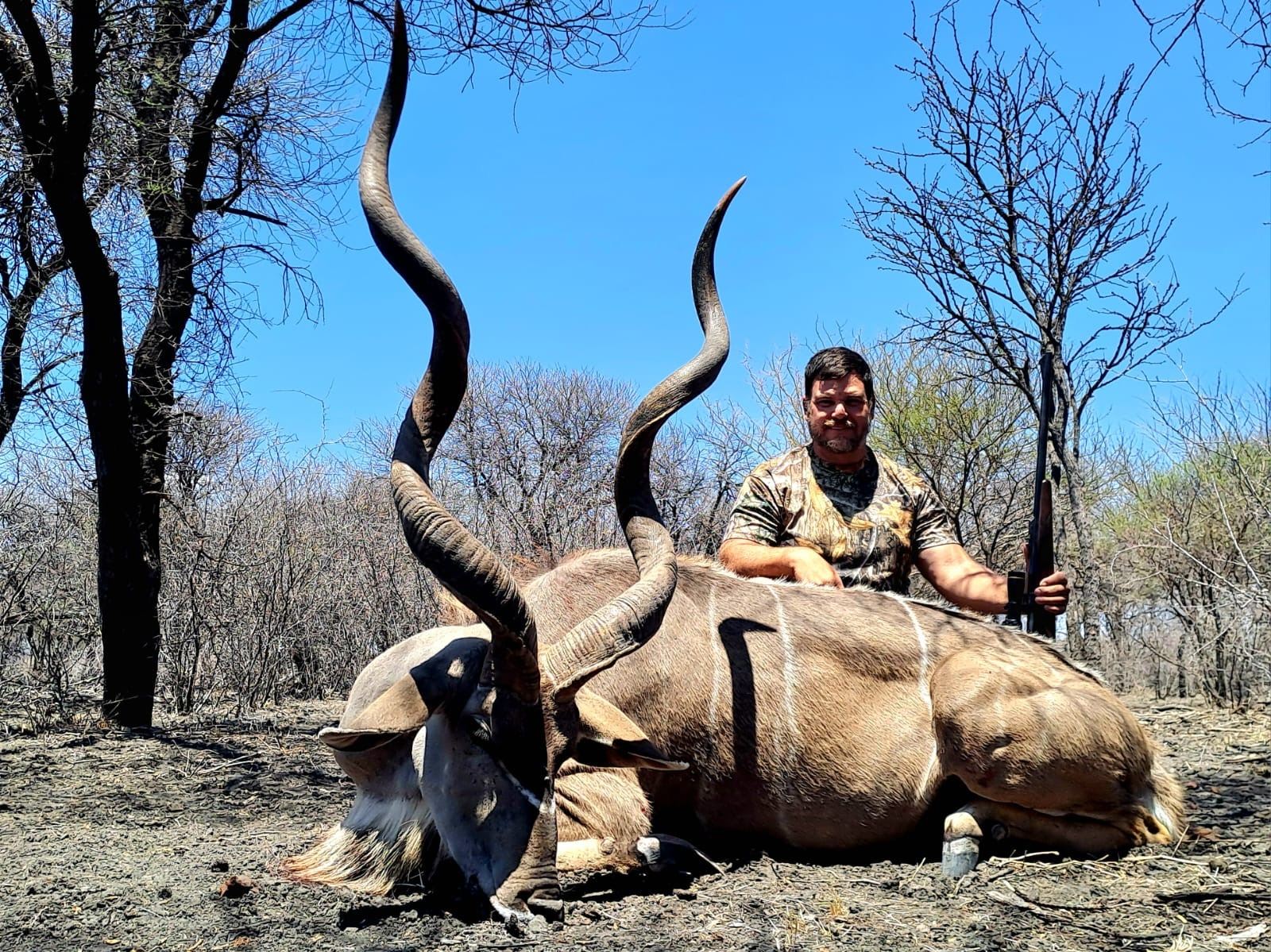 Included: Daily rates for five hunting days and two travelling days, for one hunter and one observer, trophy fees for one Kudu Bull up to 55”, pick up from OR Tambo International Airport on day of arrival to camp and back to airport on day of departure, lodging, meals and beverages (local beers and wine), daily laundry, professional hunter, tracker, skinner, hunting vehicles, trophy field dressing and taxidermy prep, and transport to local taxidermist