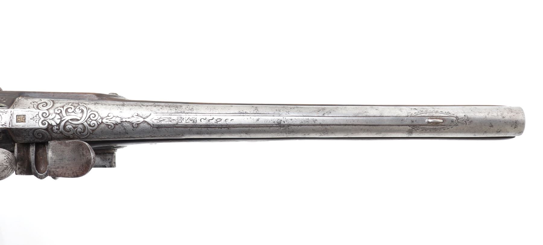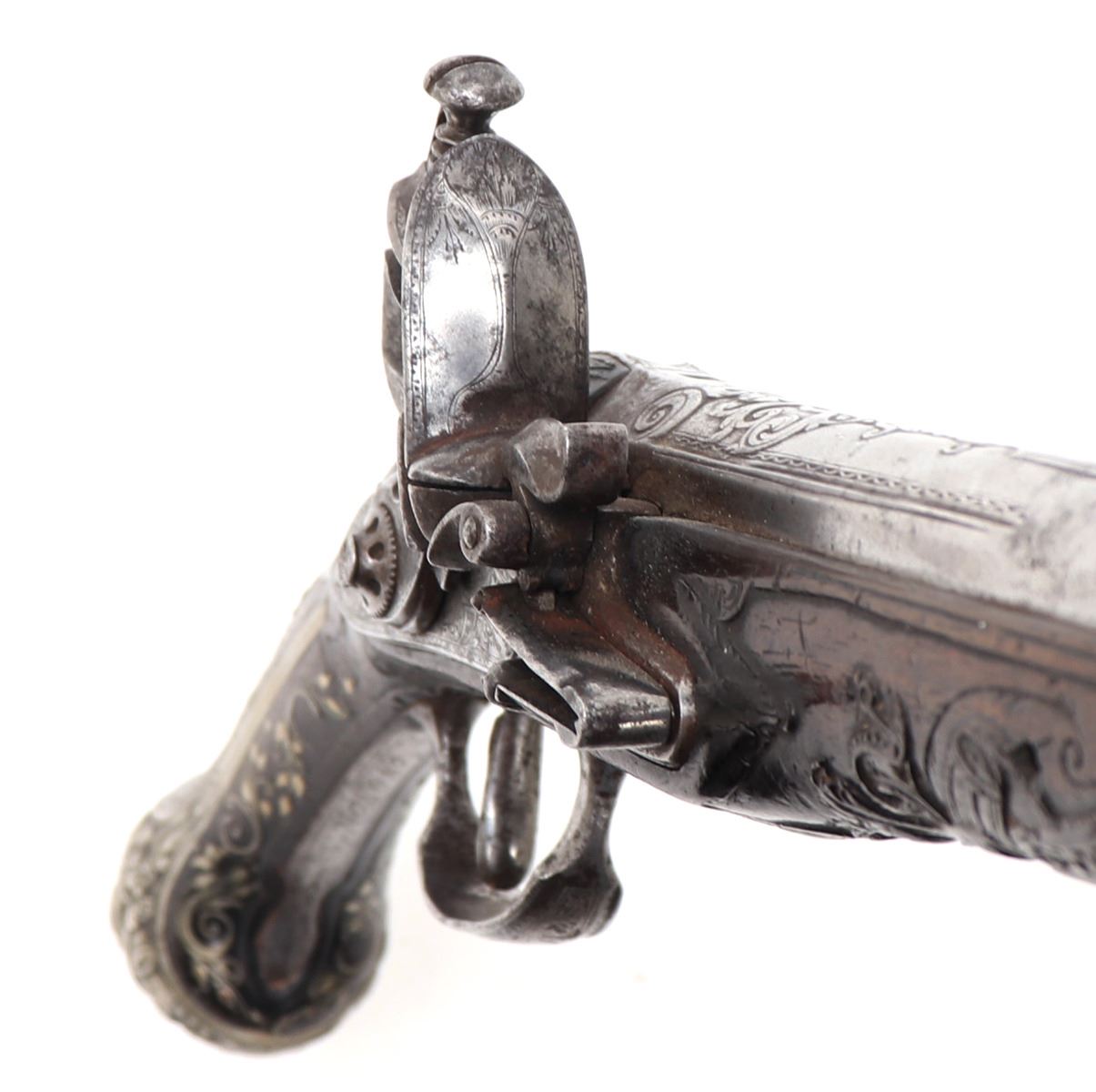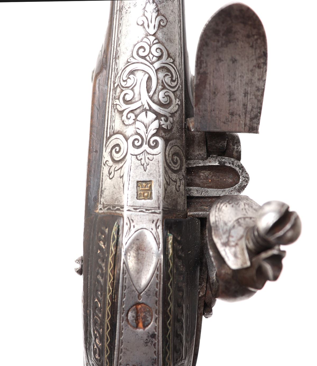 Brace of Silver Inlaid & Engraved Flintlock Cavalry Pistols, Late 18th c.
