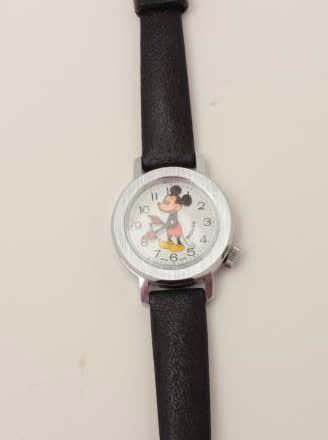 Bradley Swiss made original Mickey Mouse wristwatch, ca 1970’s, bobbing head, offset wind, with leather strap; working at time of description. Est.: $175-350