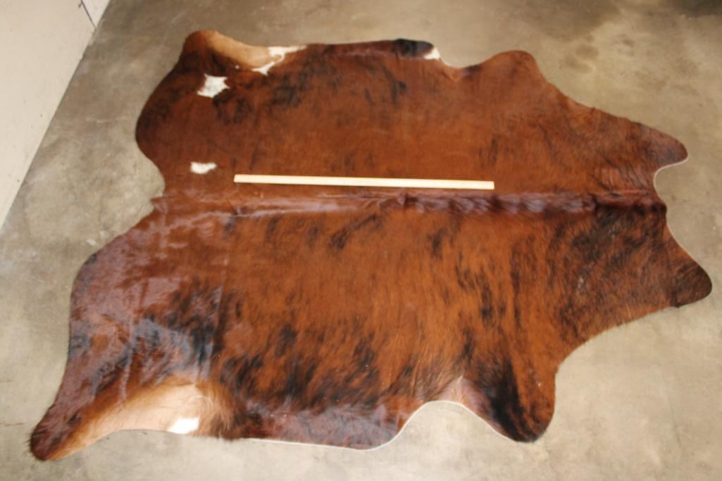 *Brand New* Brindle with White COW HIDE. It measures 82" Long x 73" Wide. TAXIDERMY