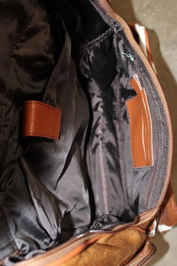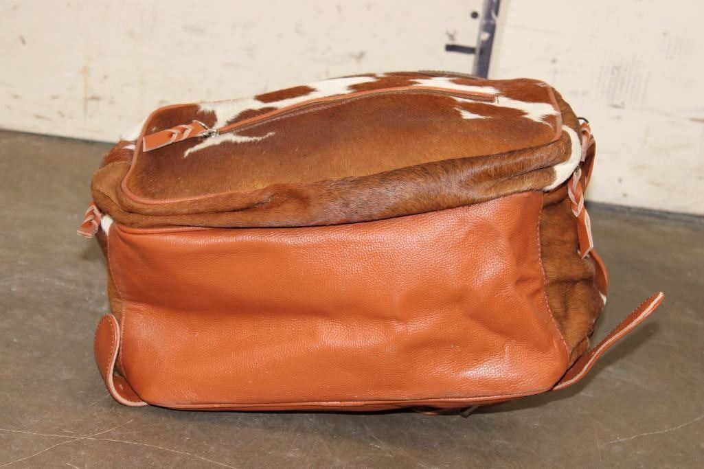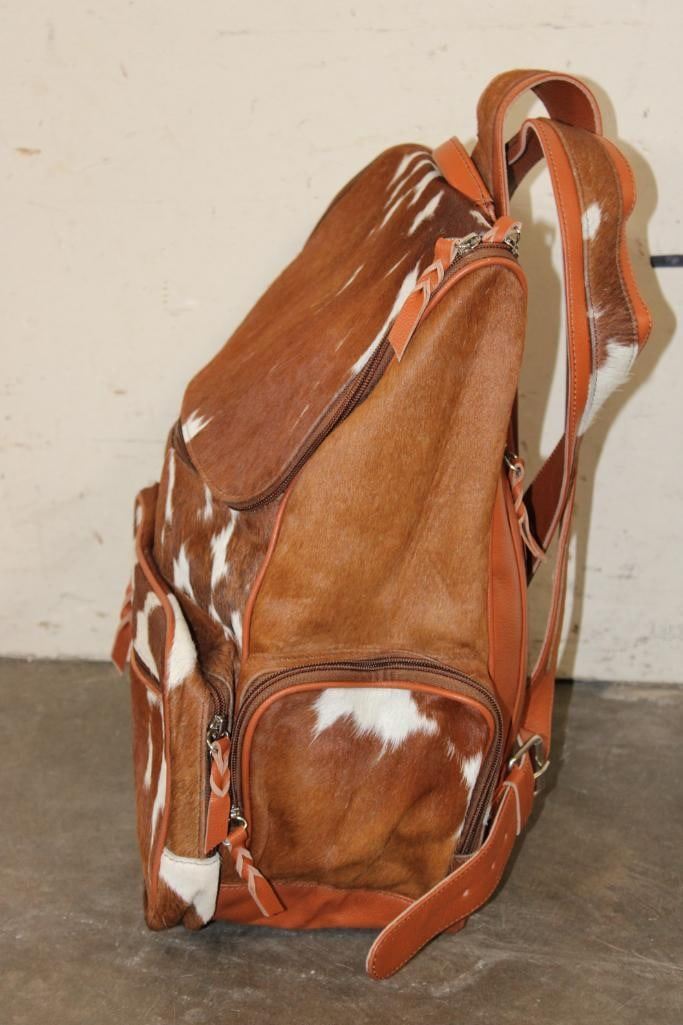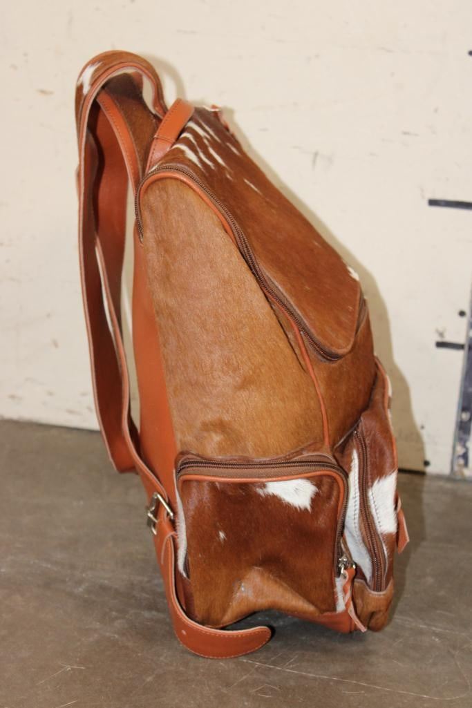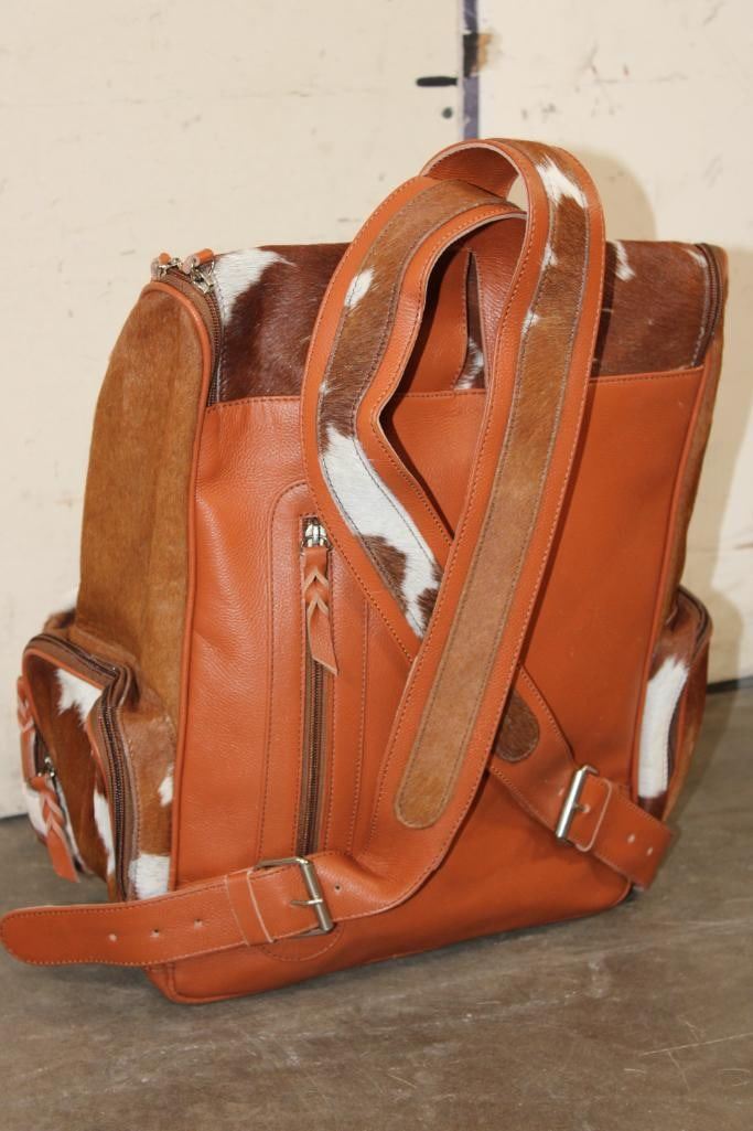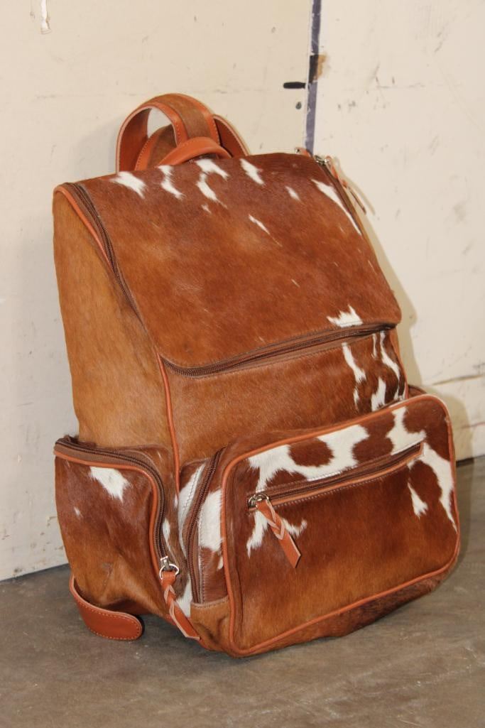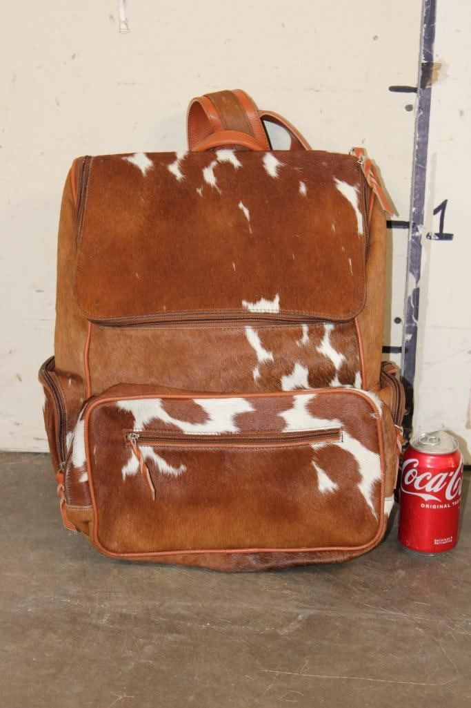 *Brand New* COW HIDE and Leather Backpack with a Laptop Compartment. It has a gorgeous speckled colorway and lots of pockets for storage. It measures 17" Tall x 15" Long x 8" Wide. WESTERN BACKPACKS AND BAGS