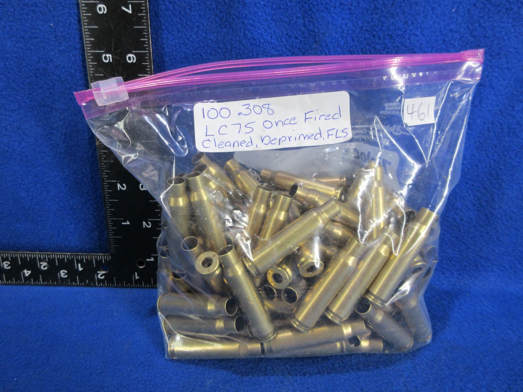 Brass Only - 308 Win. 1x Fired, Cleaned, Deprimed, FLS - LC 75 Headstamp - Bag of 100