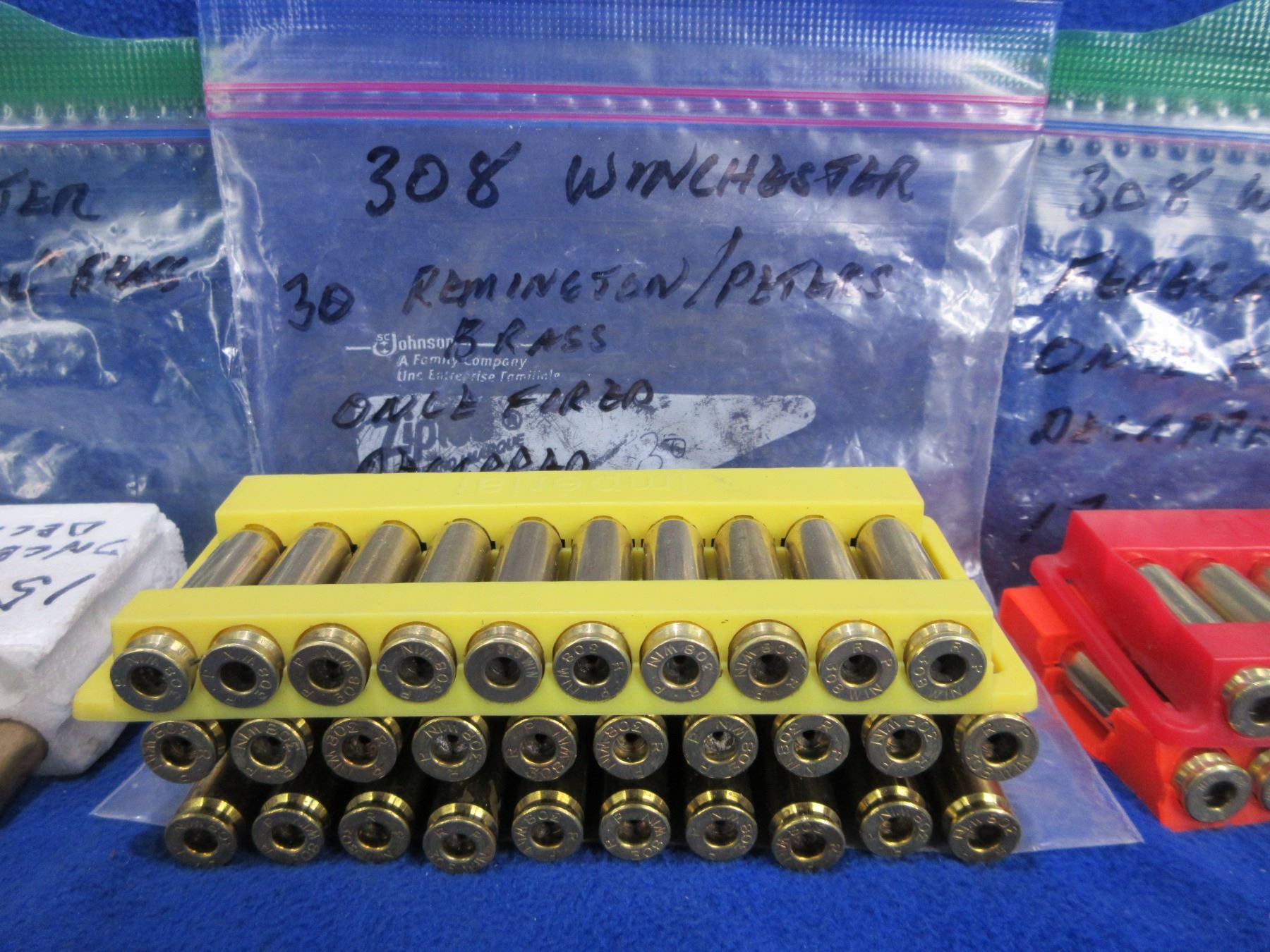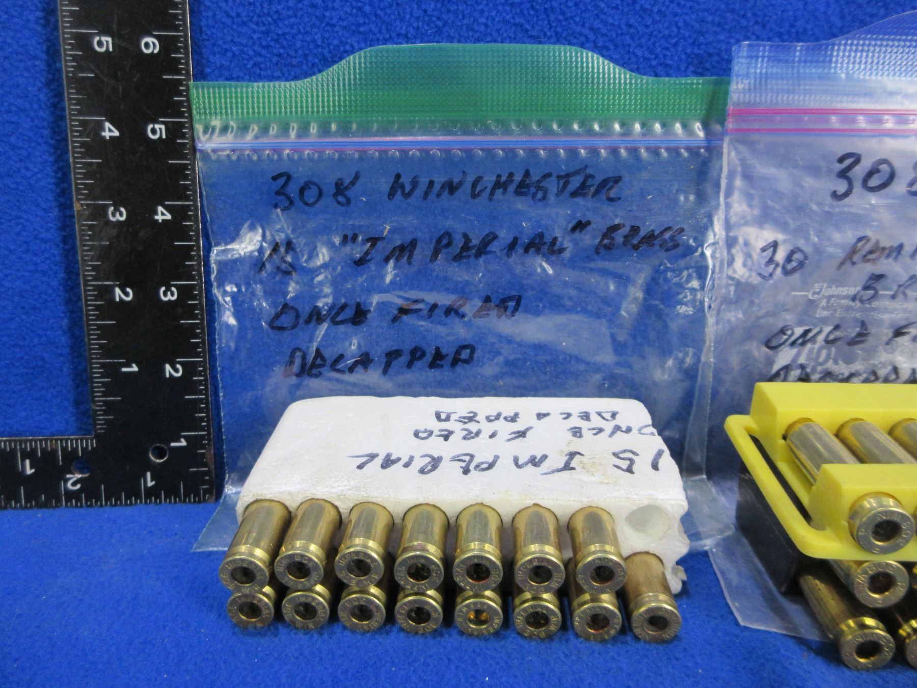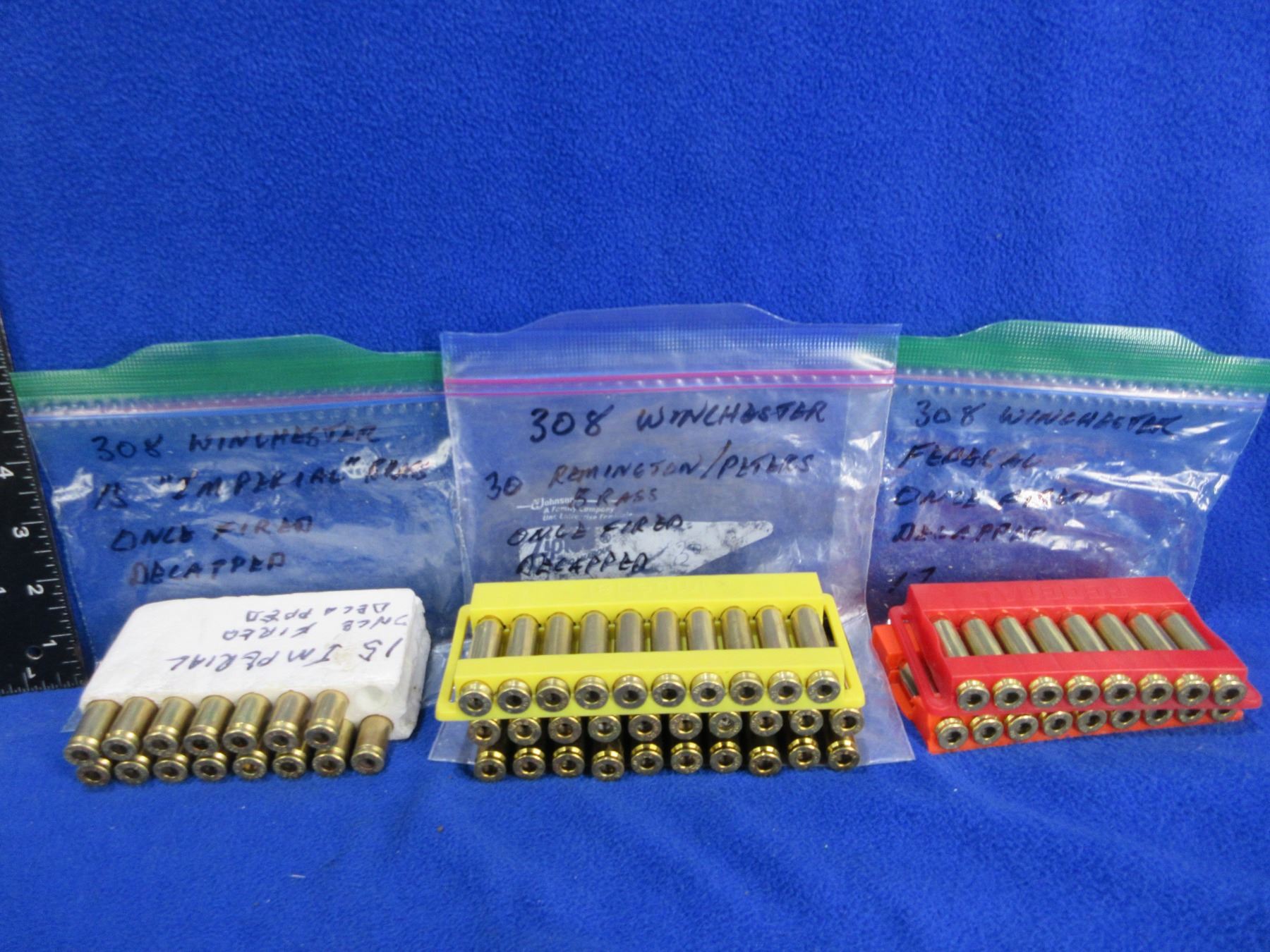 Brass Only - 308 Win. 1x Fired Deprimed - 62 Total - 30 RP Headstamp, 15 Imperial Headstamp, 17 FC Headstamp